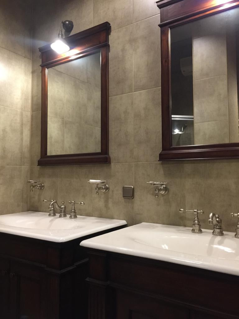 -санузлы: керамогранит, сантехника Kohler, производство США.