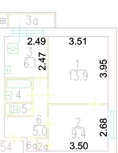Площадь кухни 6.1 м2