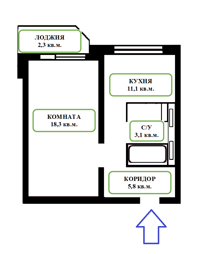Жилая площадь 18.3 м2