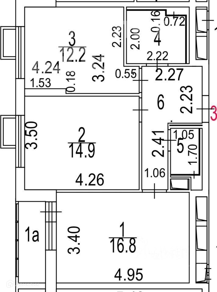 Общая площадь 57.5 м2