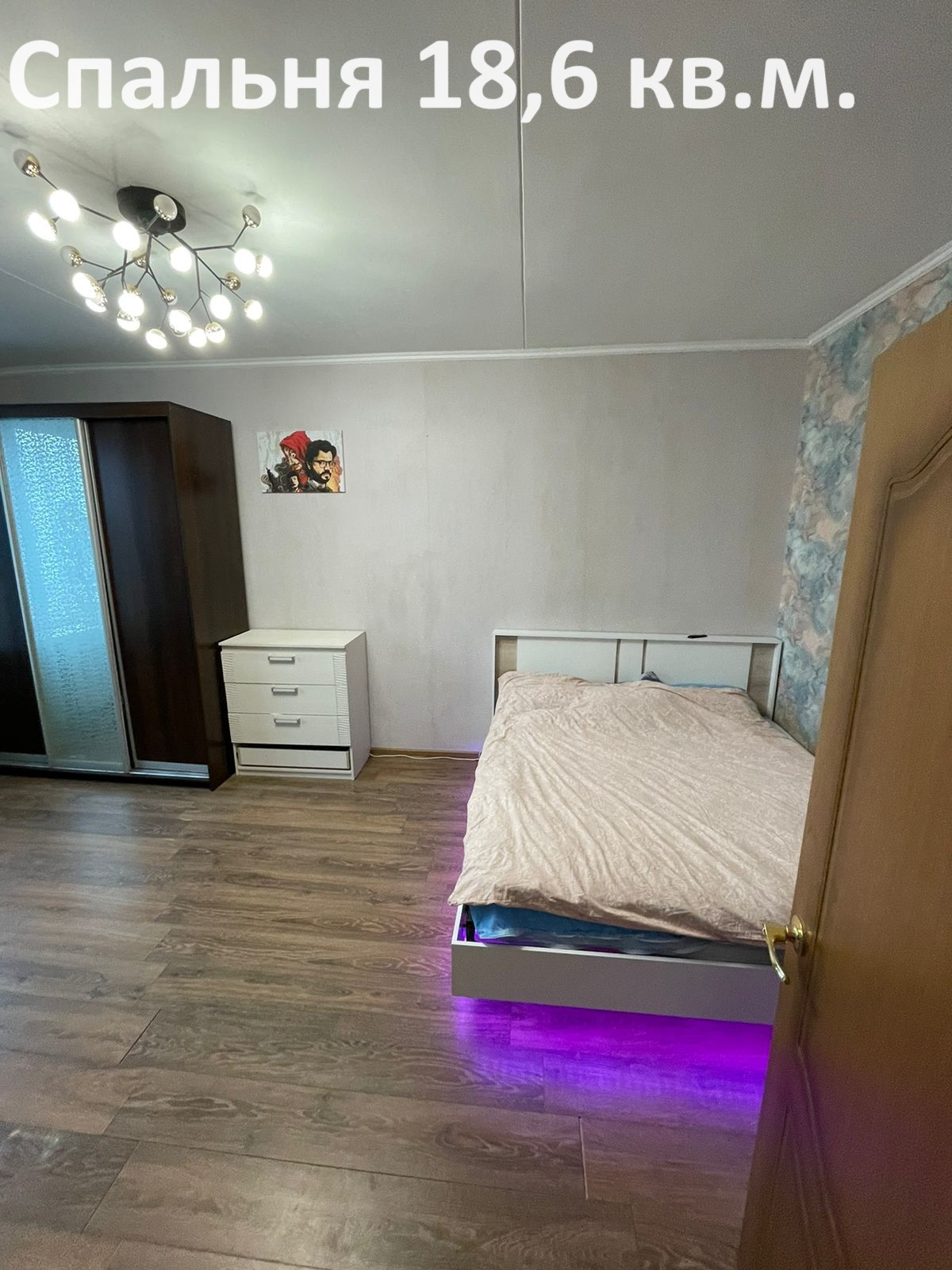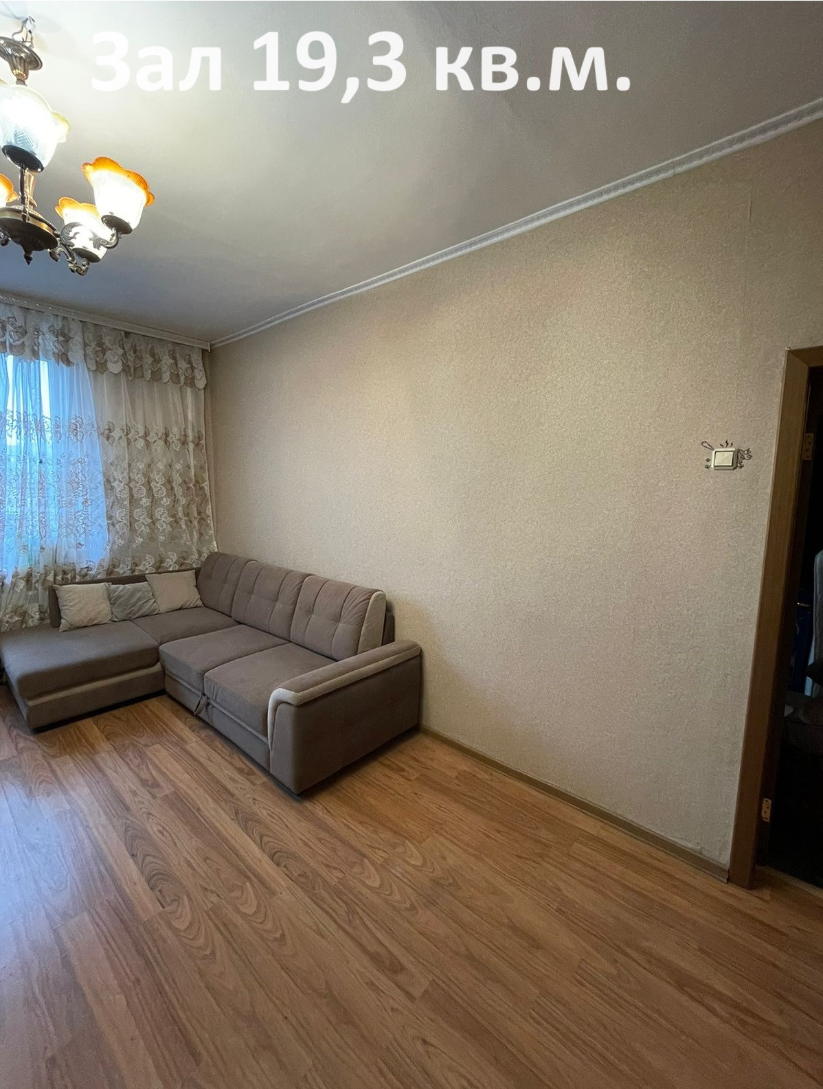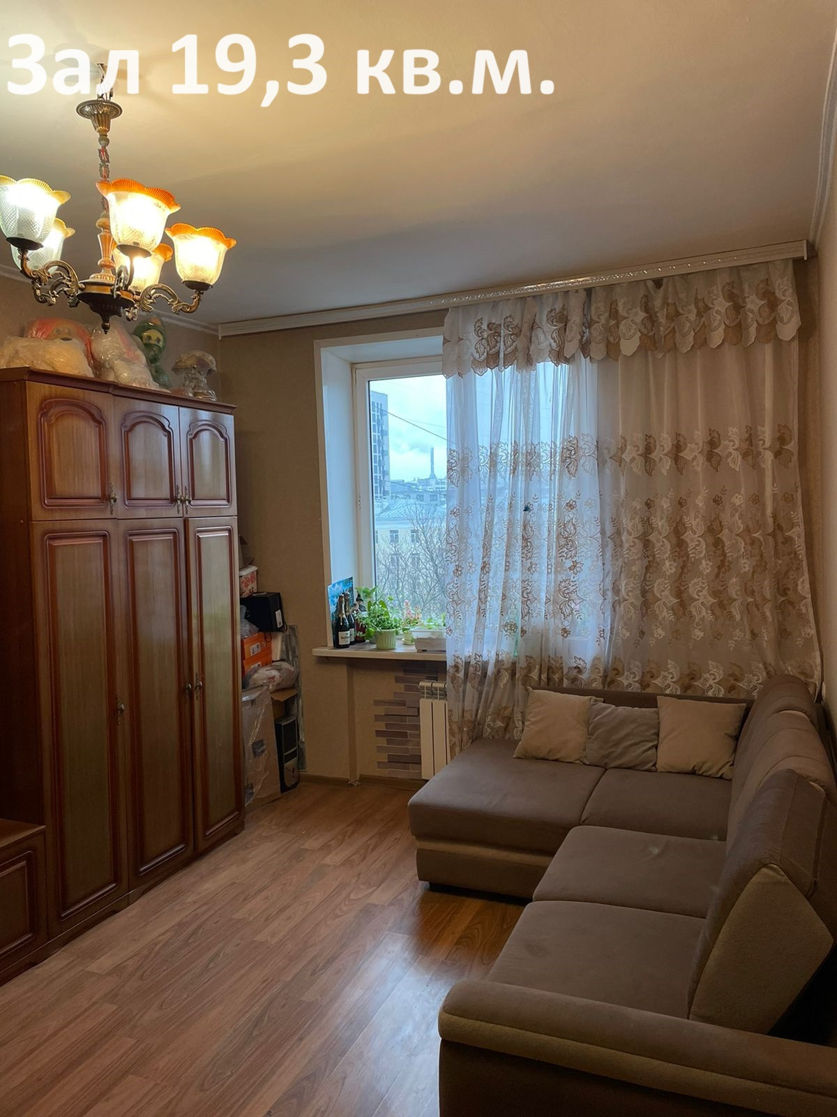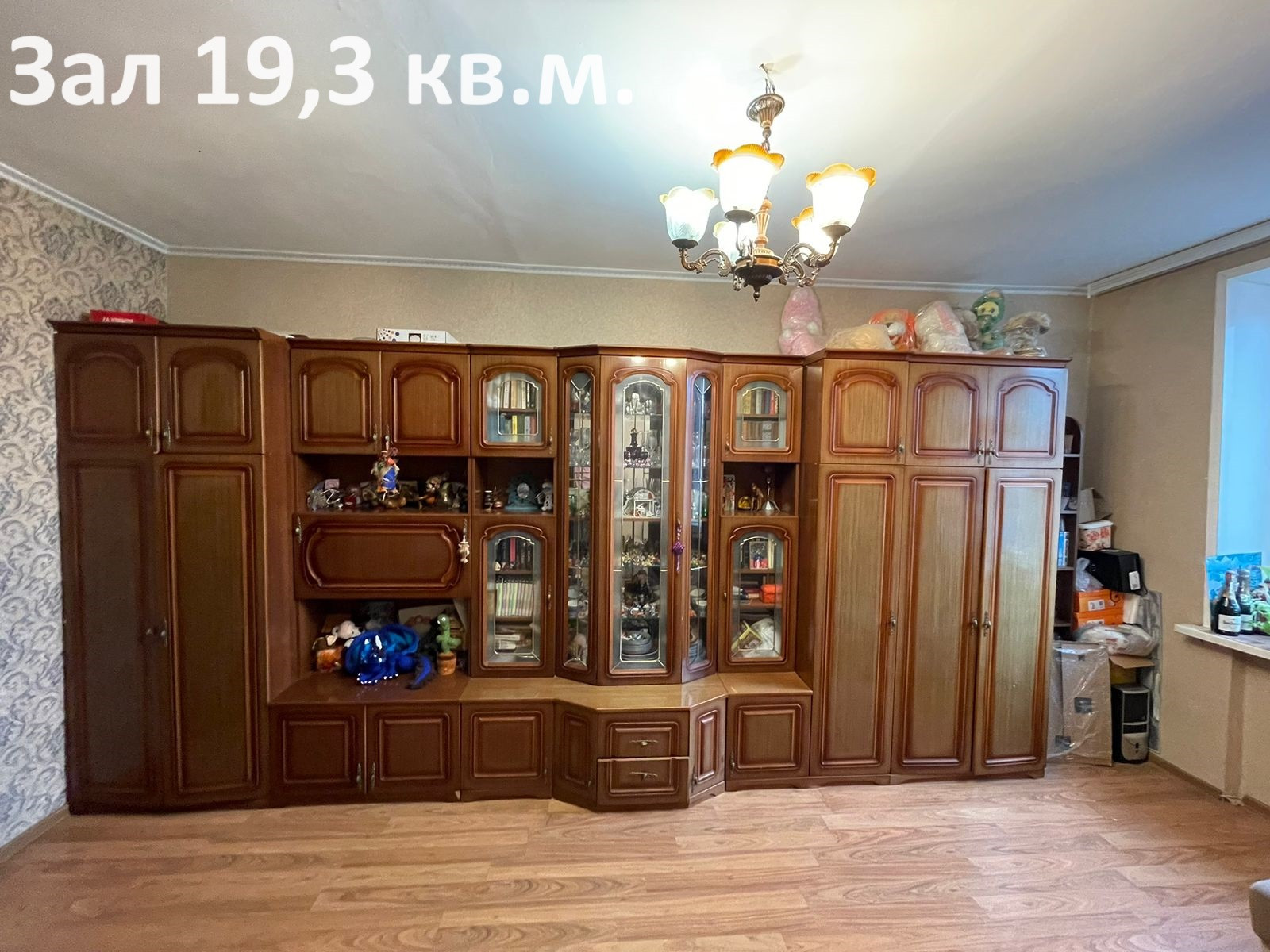 Зал 19,3 кв.м.(мебельная стенка, тумба), спальня 18,6 кв.м.(шкаф-купе, компьютерный стол), комната 13,1 кв.м. с балконом 1,5 кв.м. (комод, стол-книжка, 2 раскладных дивана, 2 кресла), кухня 7,9 кв.м.(кухонный гарнитур, диван, плита с духовкой), ванная (стиральная машинка, полка, тумба с раковиной, зеркало с подсветкой), коридор (шкаф для одежды).