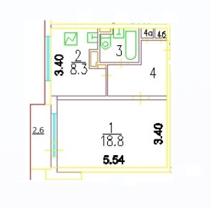 Общая площадь 40.1 м2
