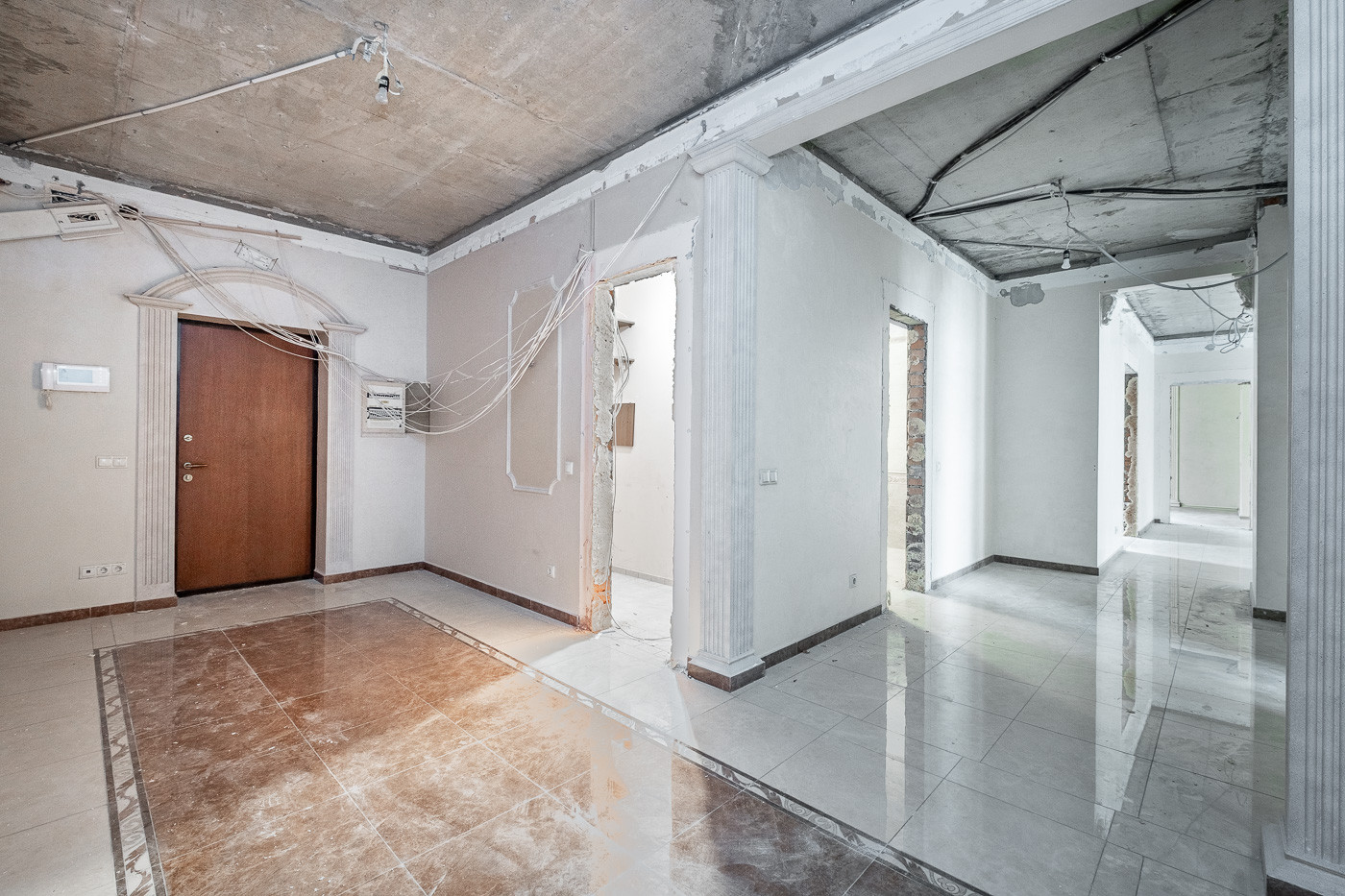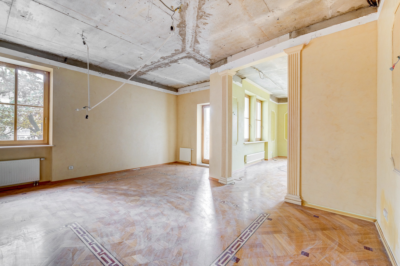 Квартира позволяет реализовать любую дизайнерскую фантазию благодаря своей органичной планировке и атмосферному пространству. Просторная гостиная, кабинет, кухня, три изолированные комнаты, 2 большие ванные комнаты, гардеробная, просторная входная группа. Высокие потолки (3 метра) и множество окон (на три стороны) по периметру квартиры, создают ощущение простора и свободы, при этом создавая уют, а так же эффект тишины и спокойствия загородного дома.