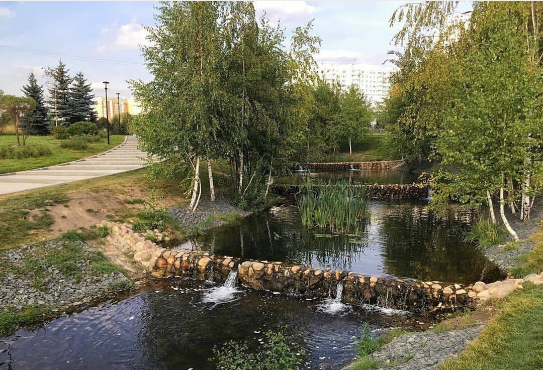 Расположен в экологическом районе Юго-Запада Москвы Южное Бутово, в окружении ландшафтных парков,  аллей и множество прудов. С собственным насыпным пляжем и множественными современными спортплощадками.