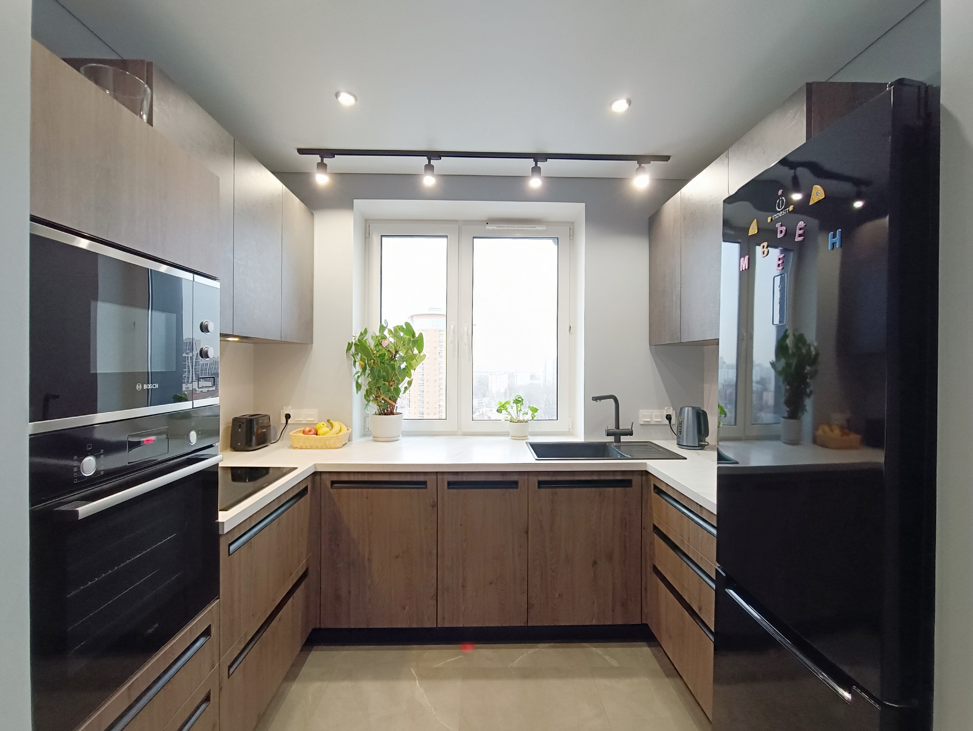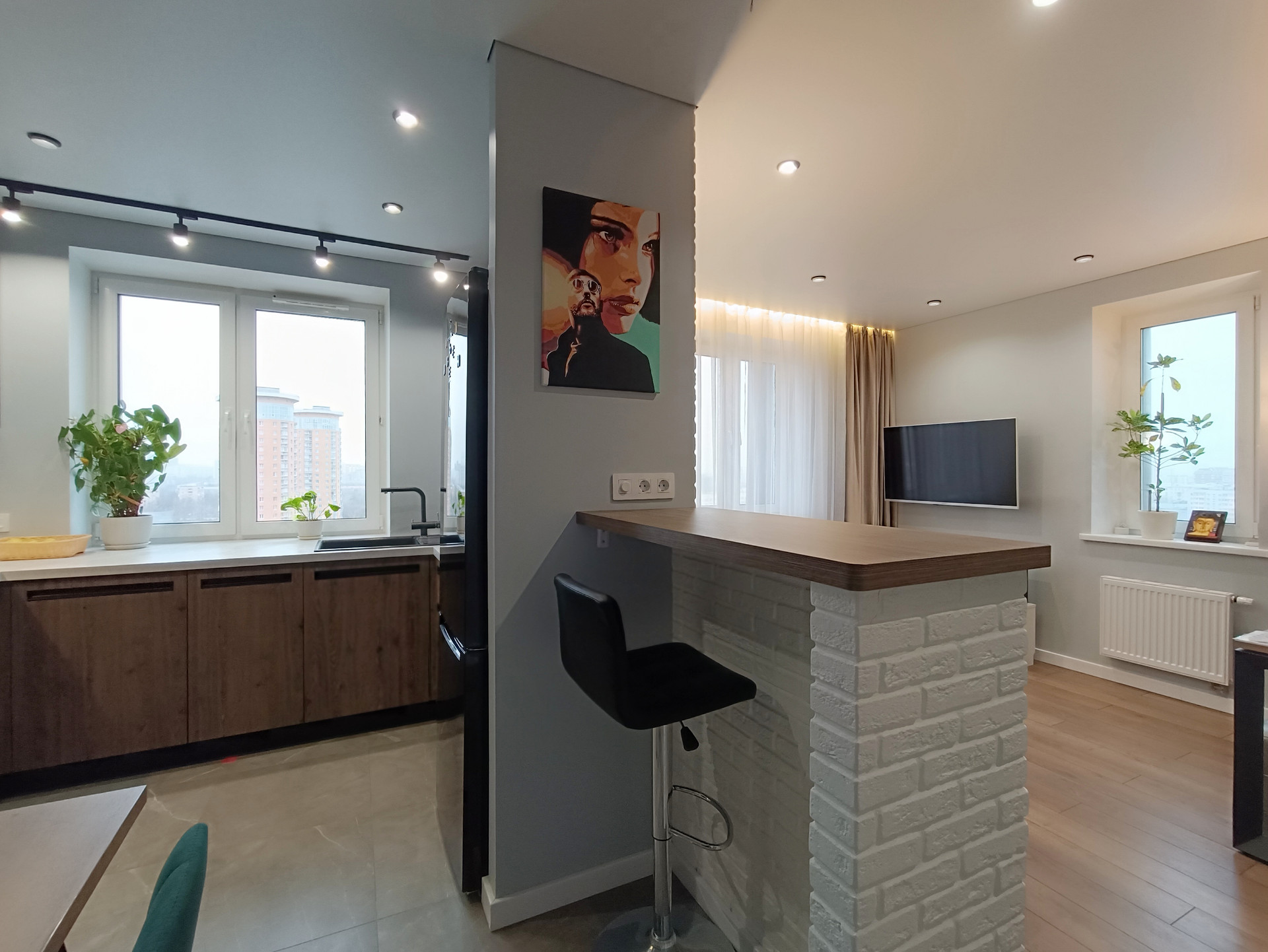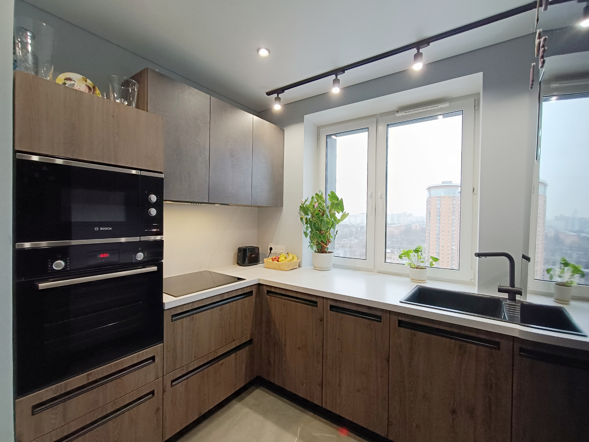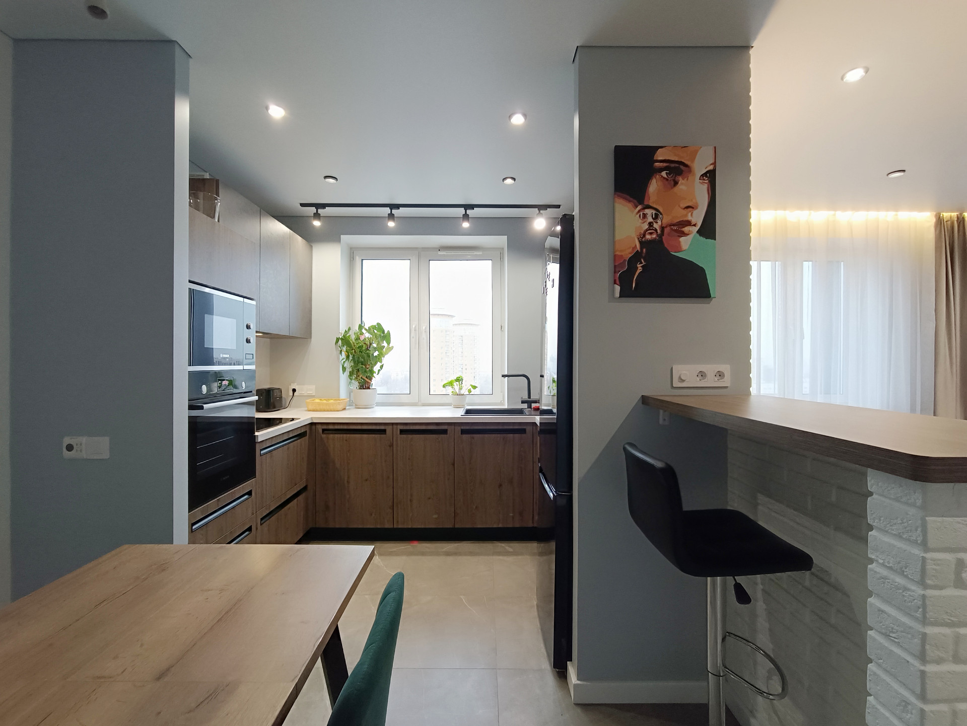 - Качественная, современная и функциональная кухня, оснащенная всей необходимой встроенной техникой (варочная панель, вытяжка, духовой шкаф, микроволновая печь, посудомоечная машина, холодильник);