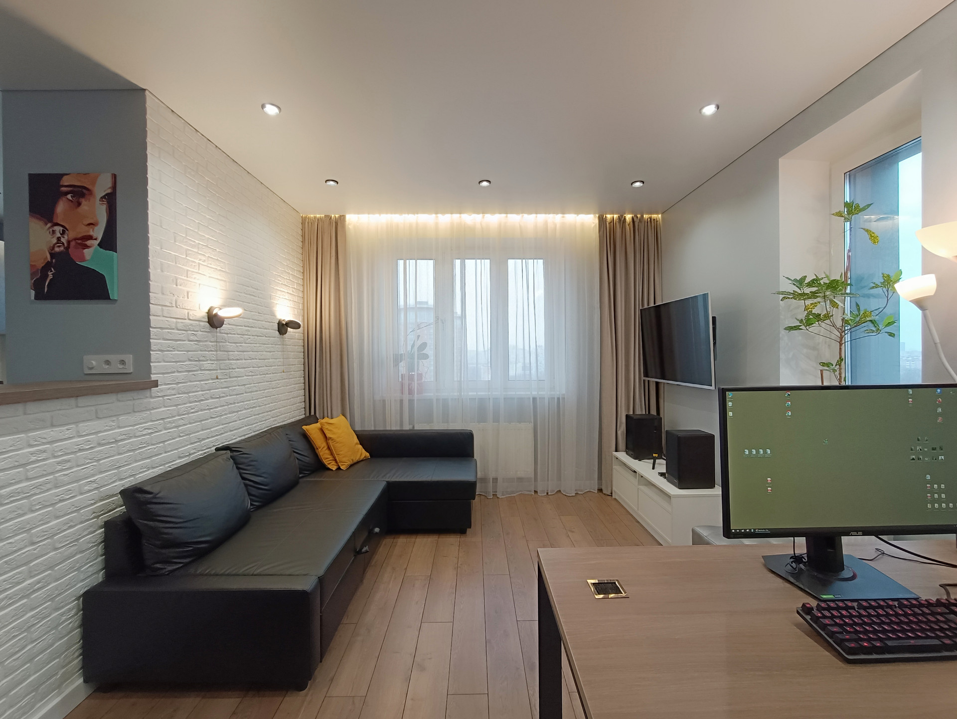 - Дизайнерские потолки (теневой профиль + подсветка);