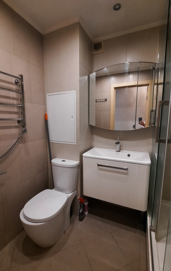 Кондиционеры в каждой комнате. Посудомоечная машина Bosch. Встроенные зеркальные шкафы. В ванной комнате, кухне и коридоре полы с подогревом. Застеклённый балкон.