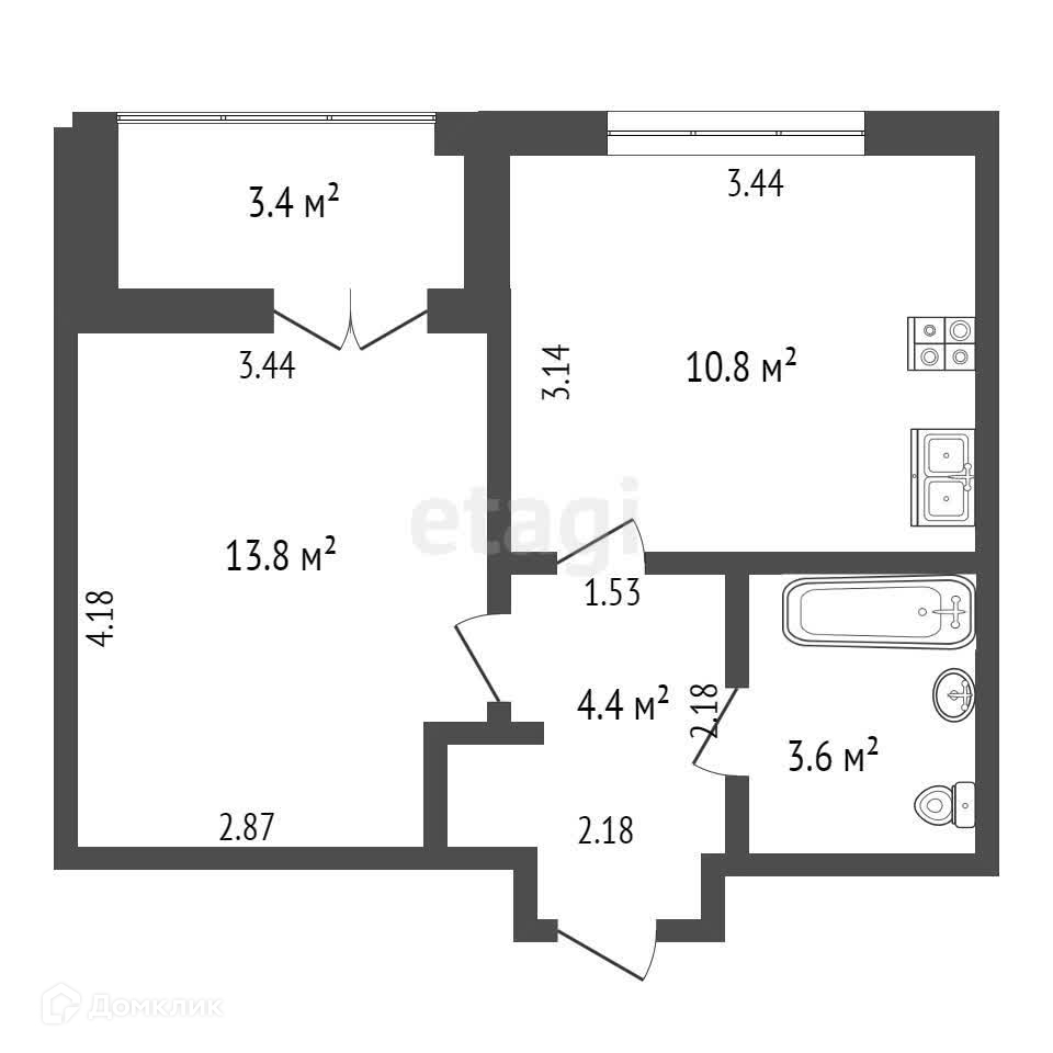 Балкон, лоджия 1 балкон