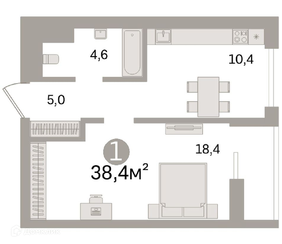 Общая площадь 38.4 м2