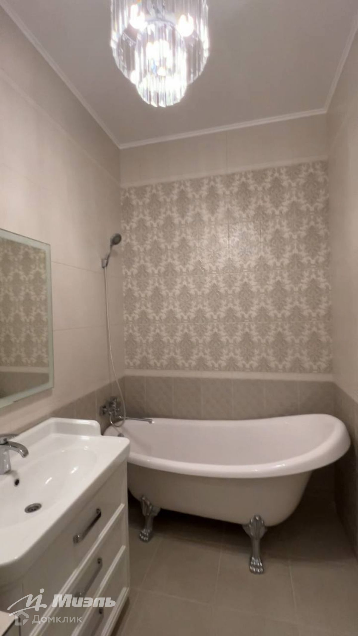 Стены оштукатурены, поклеены стильные обои, на полу выложен керамогранит и паркетная доска. В санузле - керамическая плитка Kerama Marazzi, пол с подогревом, зеркало с подсветкой и электрополотенцесушитель.