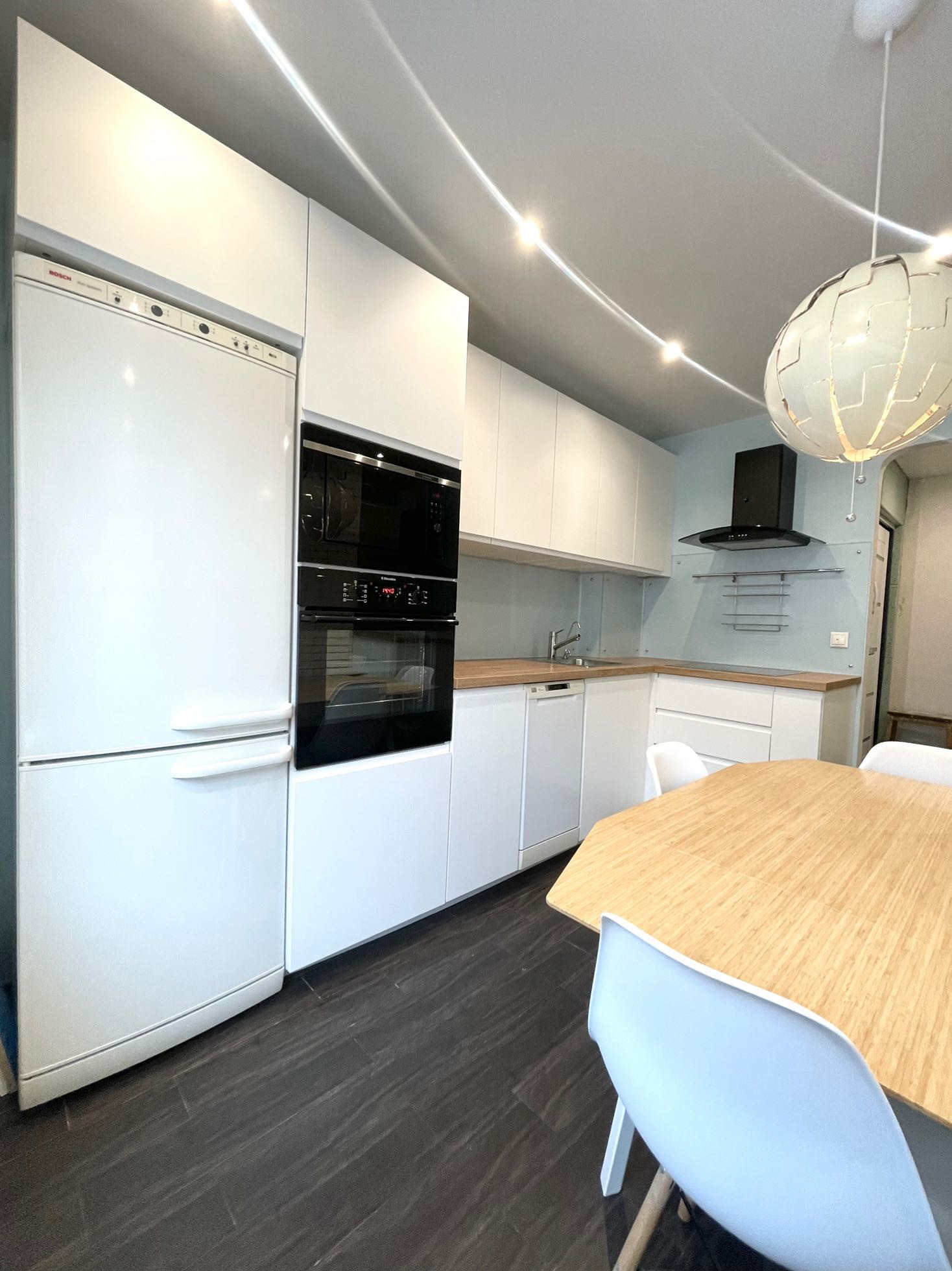 - Кухня 7.9 кв. м: электроплита и духовой шкаф Electrolux, посудомоечная машина, микроволновая печь, фильтр для воды, теплый пол.