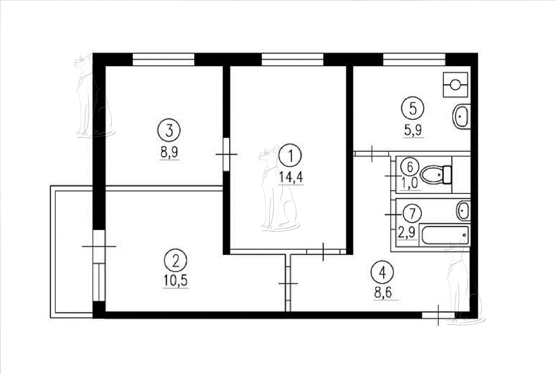 Общая площадь 51 м2