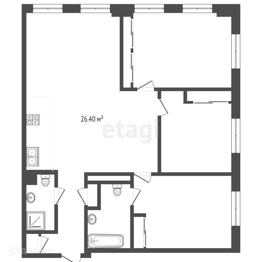 Площадь кухни 26.4 м2