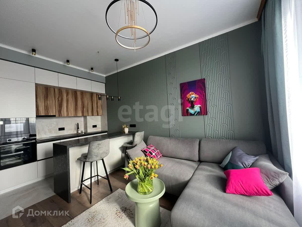 Однокомнатные апартаменты евро-формата: просторная кухня-гостиная, спальня, гардеробная, совмещенный санузел. В квартире выполнен качественный дизайнерский ремонт с полным комплектом мебели и техники.