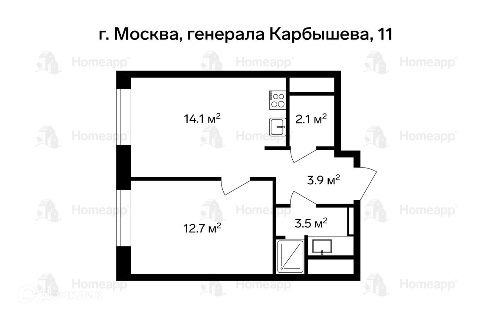 1-комнатная квартира, 38.3 м2, этаж 24 / 30, на продажу в Москве, бульвар Генерала Карбышева, 11