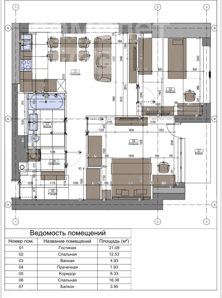Общая площадь 69.1 м2