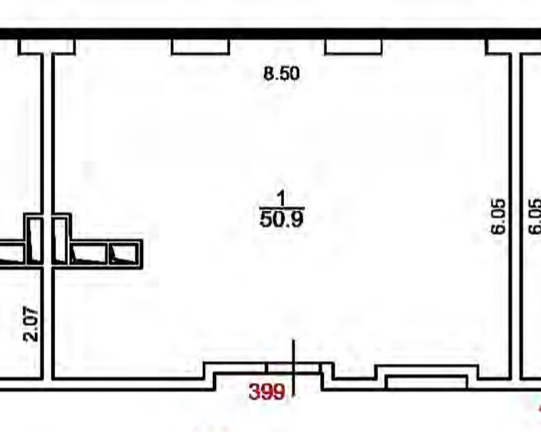 Общая площадь 50.3 кв.м, потолки 2.75 м в чистовом виде.