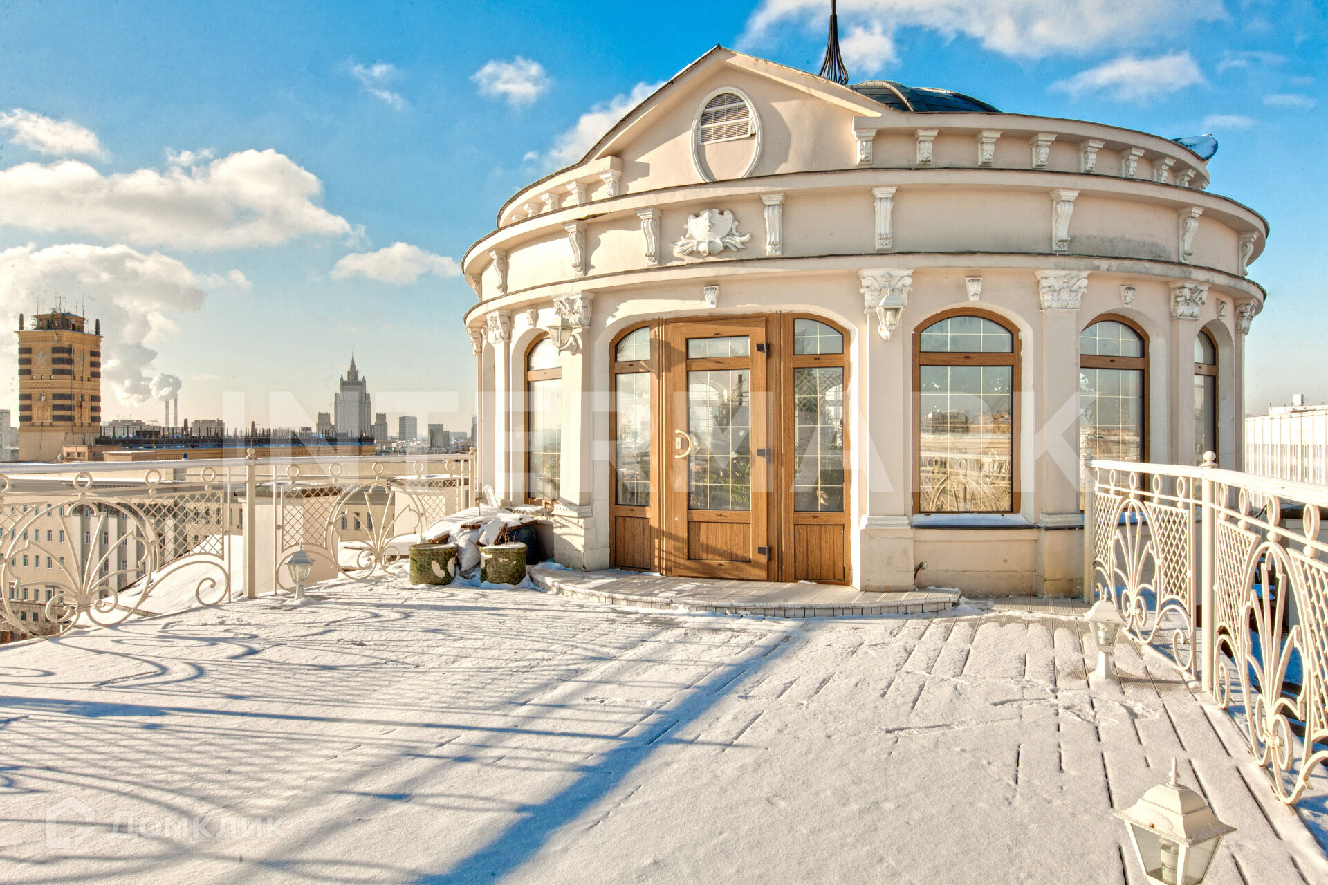 Лот 59167. Уникальное предложение в легендарном доме на Знаменке в шаге от Кремля — 3-уровневая квартира 379 кв.м с роскошной ротондой и фантастическими видами на центр столицы. На первом уровне спланированы зал с действующим камином, кухня-столовая, комната для конференций, холл, гардеробная и гостевой санузел. Второй уровень включает мастер-спальню, 3 комнаты, кабинет, 2 с/у. Третий уровень занимает приватная ротонда с открытой площадкой, откуда открывается великолепная панорама на башни Кремля, ХХС и набережную Москвы-реки. На полу уложен художественный паркет, в отделке использовали мрамор и ценные породы дерева. Высота потолков - 3,2 метра.