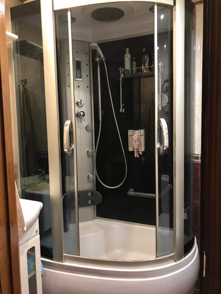 Ванная комната: душевая кабина, стиральная машина.