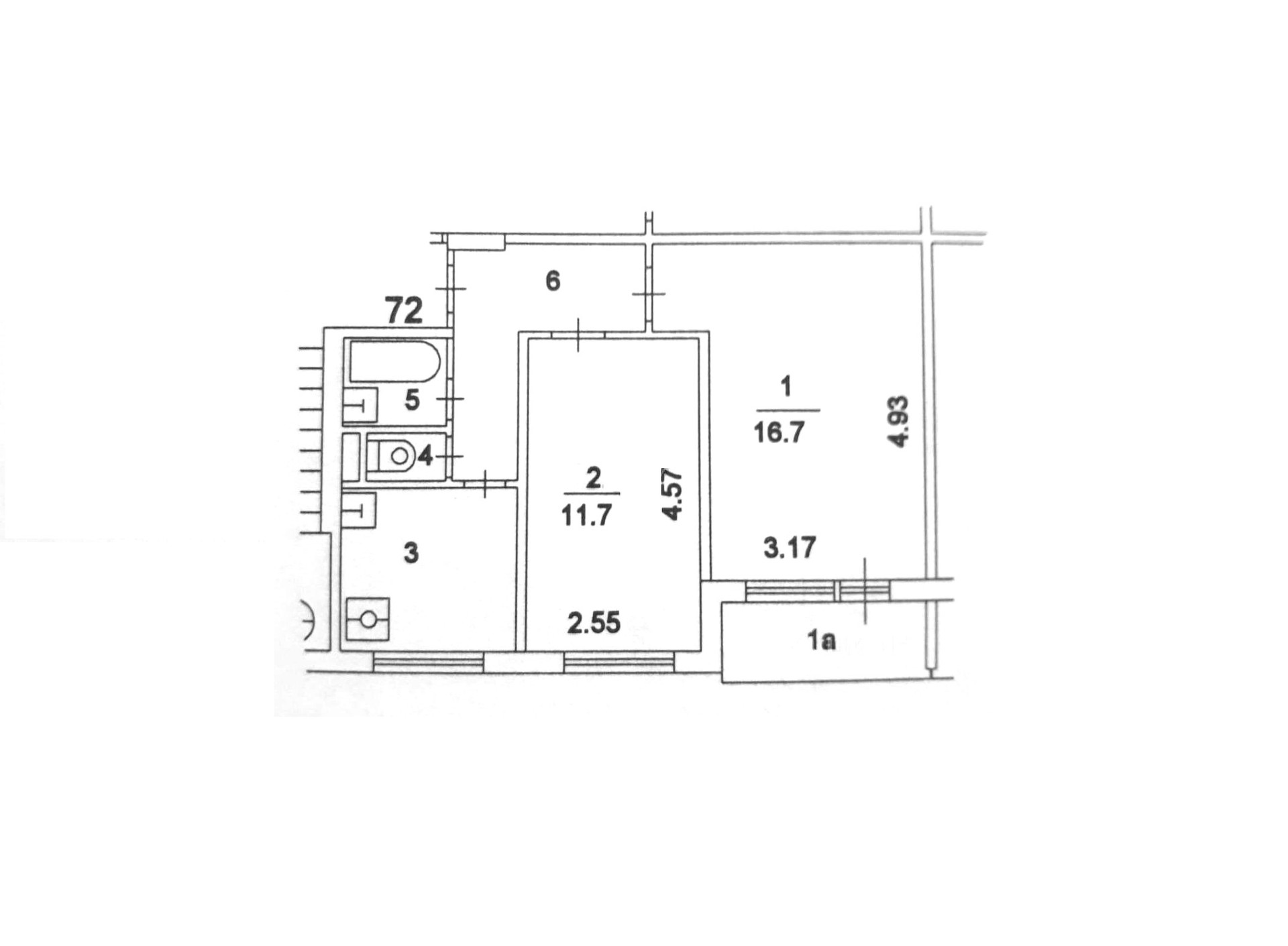 Линейная планировка, изолированные комнаты 16.7 и 11.7 кв.м., раздельный санузел, застекленный балкон из большой комнаты, окна выходят в тихий двор.