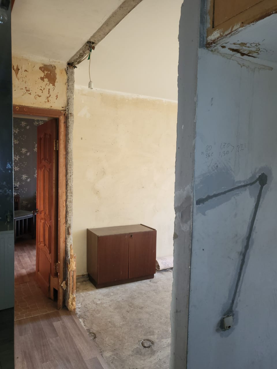 В продаже светлая, двухкомнатная квартира в состоянии, требующем ремонта.