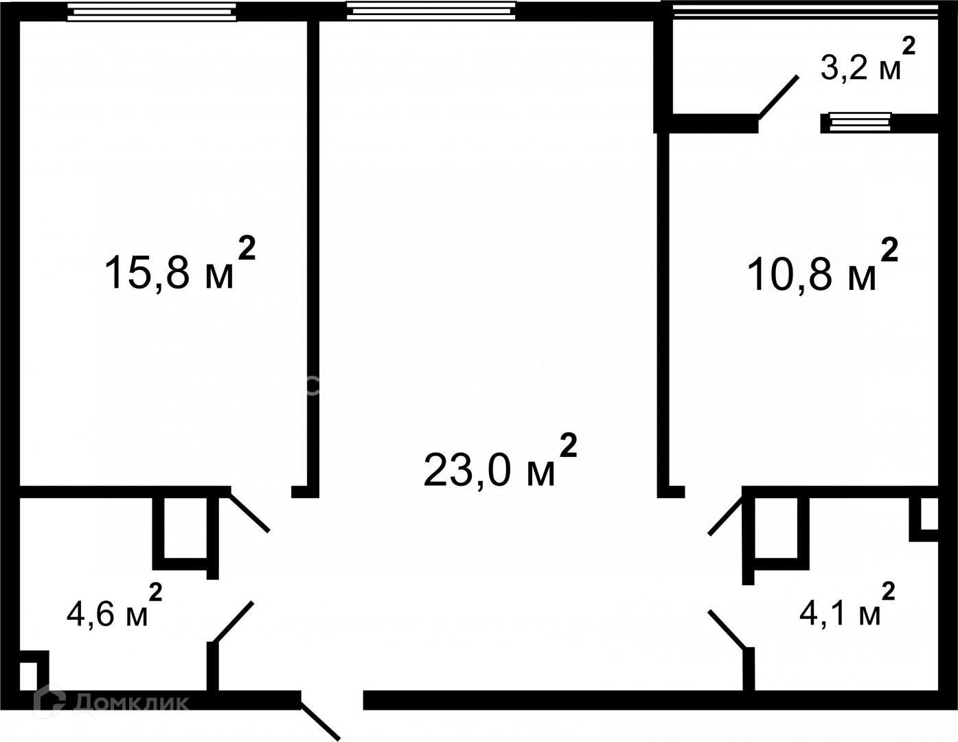 Общая площадь 59.6 м2