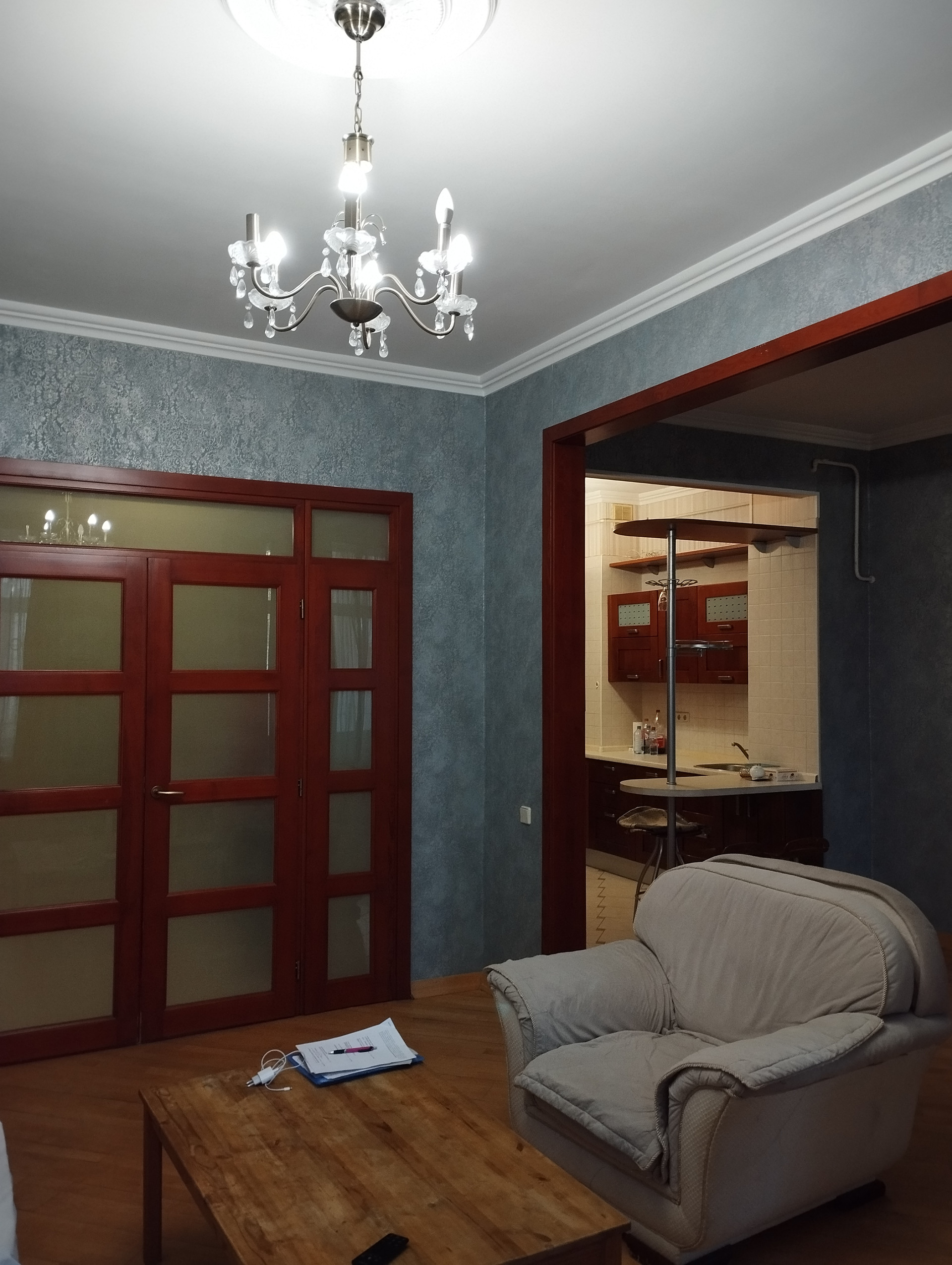 В квартире был сделан капитальный ремонт с полным демонтажем всех конструкций, возведением новых стен и полов. Несущие колонны остались нетронуты. Замена всей старой электропроводки. Перепланировка очень удачная для комфортного проживания дружной семьи с детьми. Большая гостиная с кухней и две спальни. Два отдельных санузла. Просторный коридор, вместительный шкаф-купе, который заменит целую гардеробную. Итальянский кухонный гарнитур и встроенная техника.