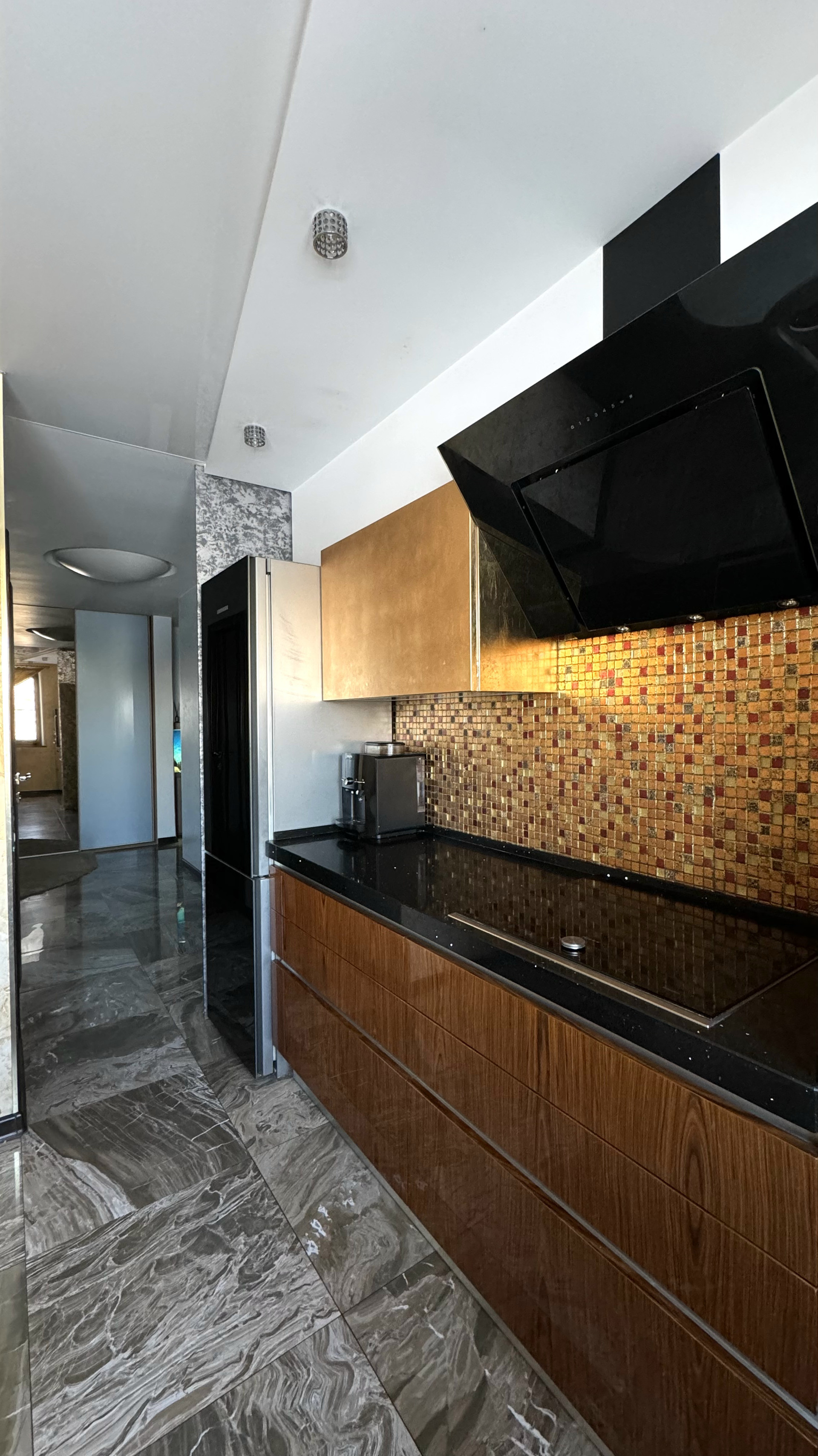 • ХАРАКТЕРИСТИКИ: Напольное покрытие, в комнатах: паркетная доска зебрано и эбони-макасаро, (кто разбирается в элитных отделочных материалах, понимает что это значит). В кухне и коридоре керамогранит (Италия). Кухонный гарнитур сделан на заказ (привезен из Италии) - натуральный массив дерева, покрыта глянцевым лаком, верхние шкафы отделка сусальным золотом, с электроприводом Blum SERVO-DRIVE. Техника премиум класса-Neff (Германия), индукционная варочная панель, микроволновая печь, духовой шкаф, посудомоечная машина Bosh, холодильник LIEBHERR с стеклянной дверью. Столешница -натуральный кварц Испания (не подвержен царапинам и поэтому всегда в идеальном состоянии), интегрированная мойка. Немецкая сантехника Villeroy & Boch. Люстры и светильники производства Италия. Кровати DREAM LAND. Матрасы Аскона на гарантии. Межкомнатные двери Sofia. Трехкамерные стеклопакеты, профиль Schco. Выключатели Schneider Electric коллекции Unica Class стекло. Мебель в гостиной Италия. Шкафы Стильные Кухни, с подсветкой. Вся мебель в квартире отличного качества и дизайна. Обои немецкие rasch, в гостиной дизайнерские премиальные обои Италия. Отличные соседи, спокойные и дружелюбные.