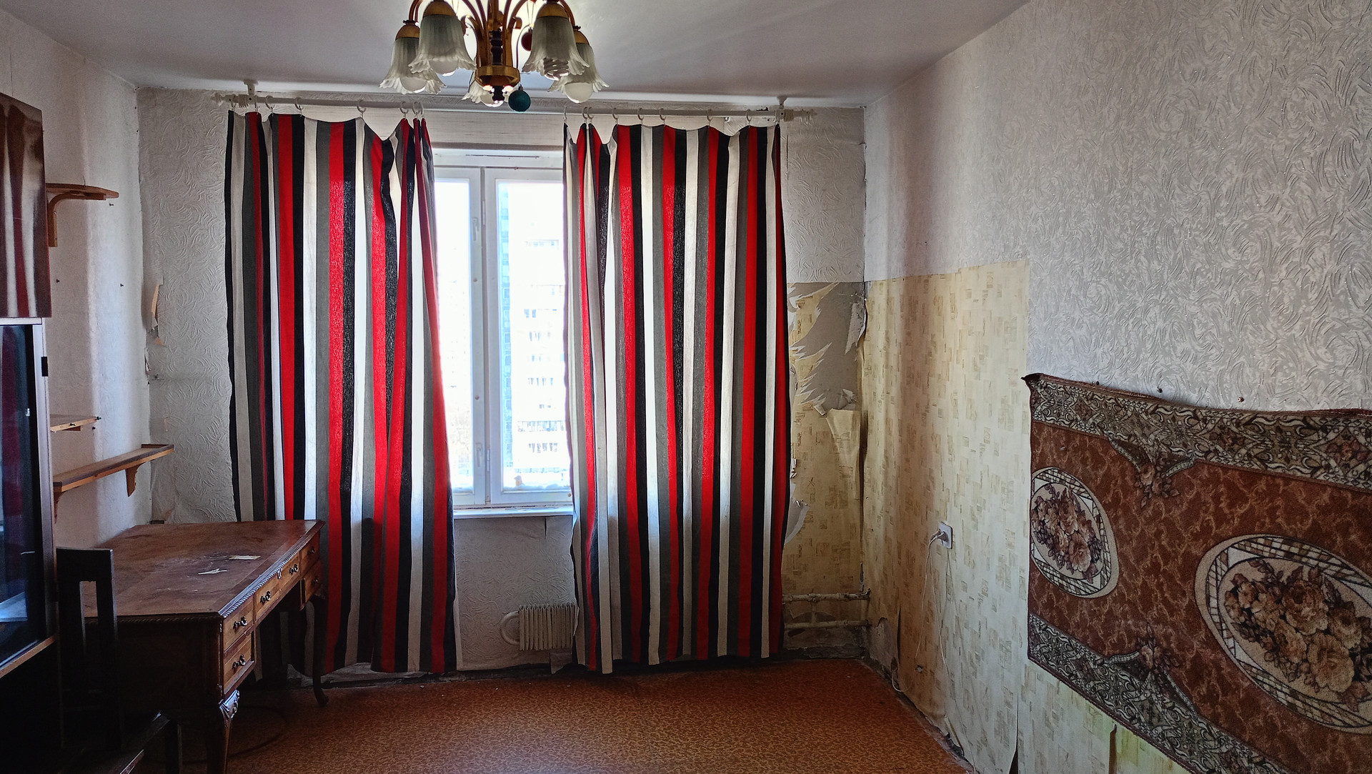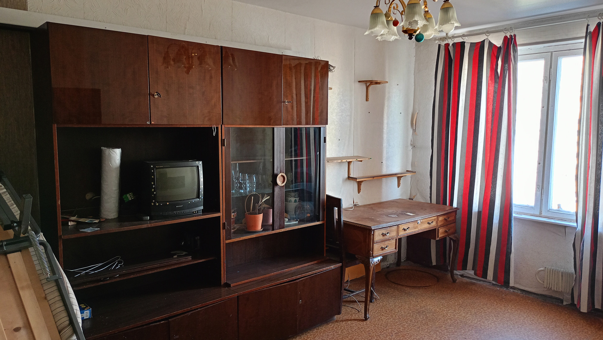 Однокомнатная квартира жилая площадь 18,9 м. кв., требуется ремонт на 9-м этаже 9 этажного дома. Окна во двор.