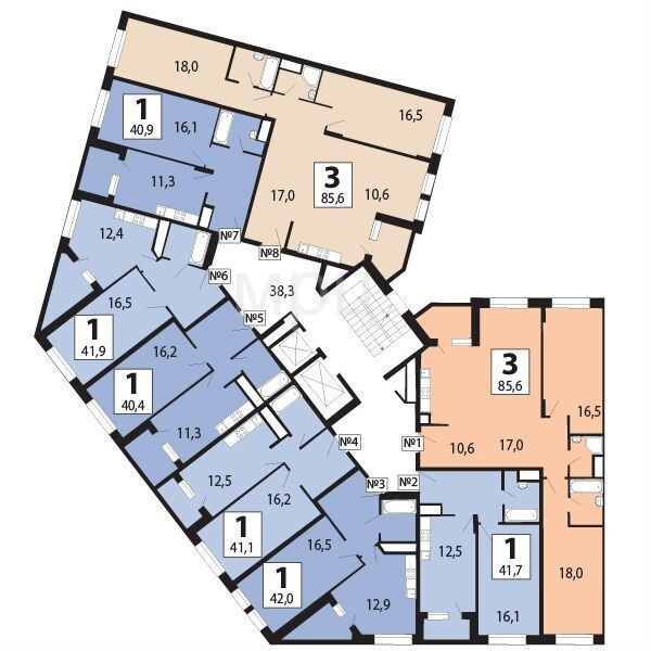 Общая площадь 38.5 м2