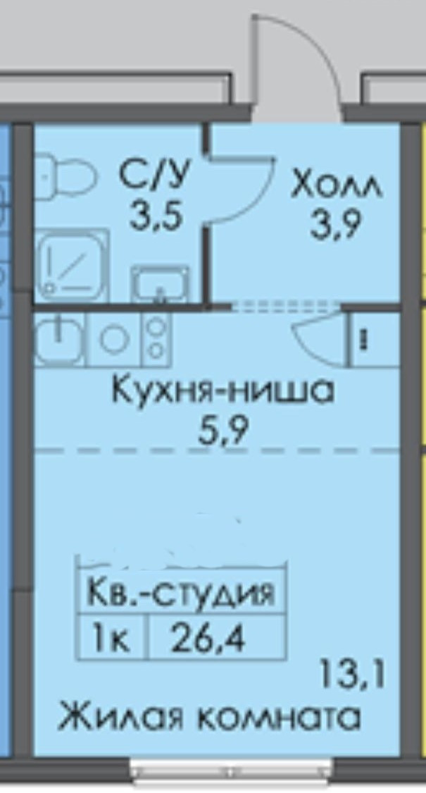 Общая площадь 26.5 м2