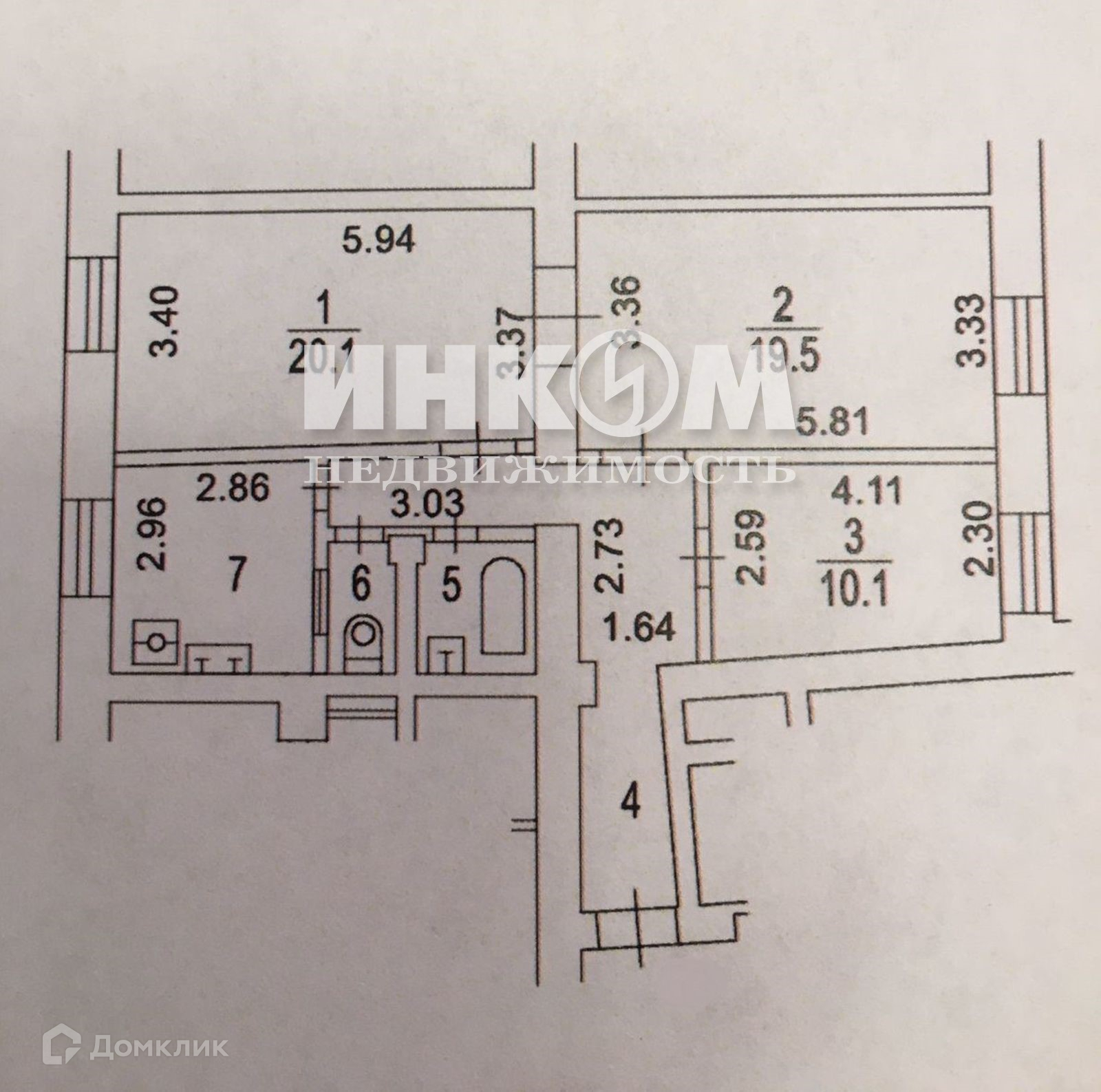 Жилая площадь 49.7 м2