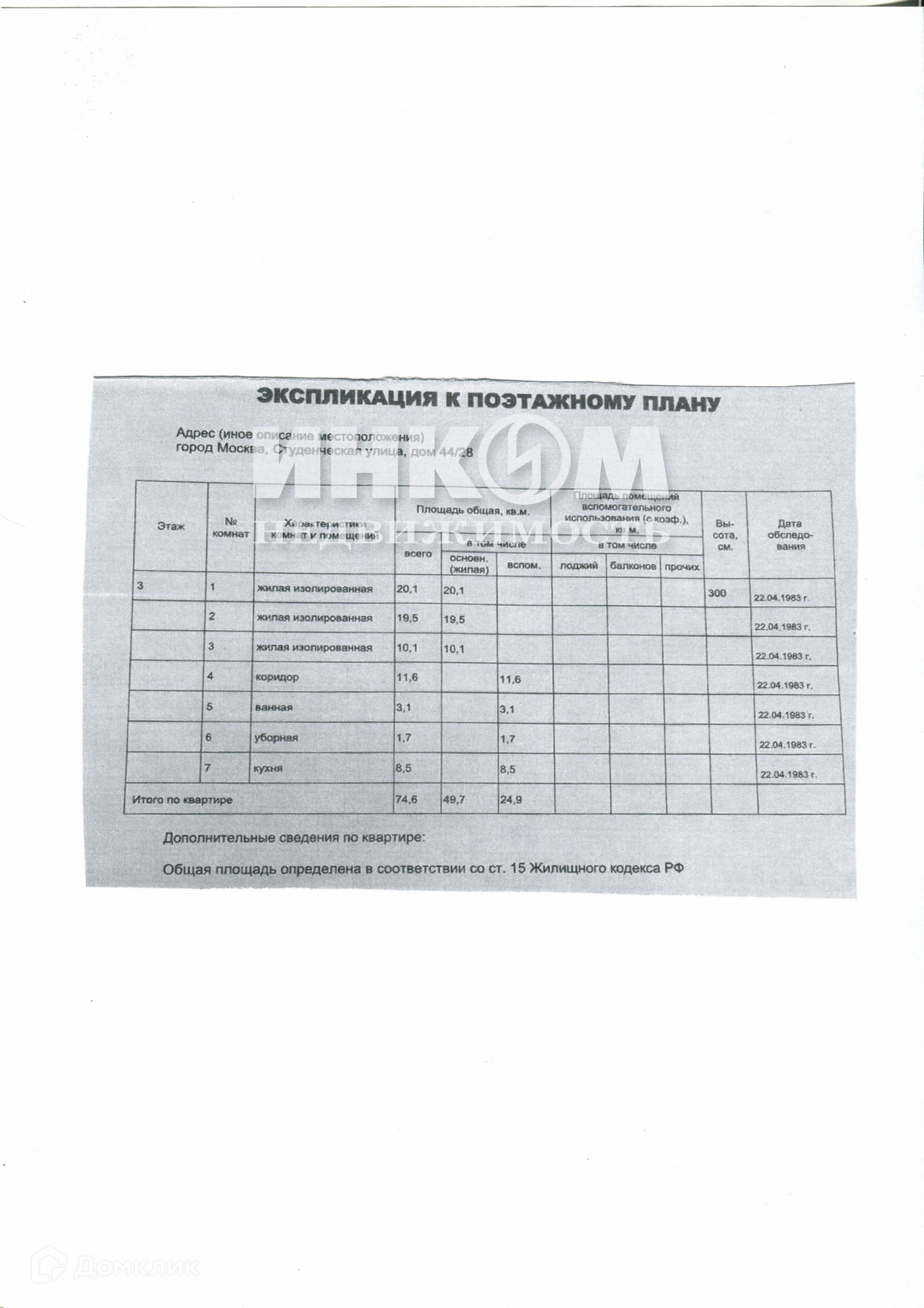 3-комнатная квартира, 74.6 м2, этаж 3 / 9, на продажу в Москве, Студенческая улица, 44/28