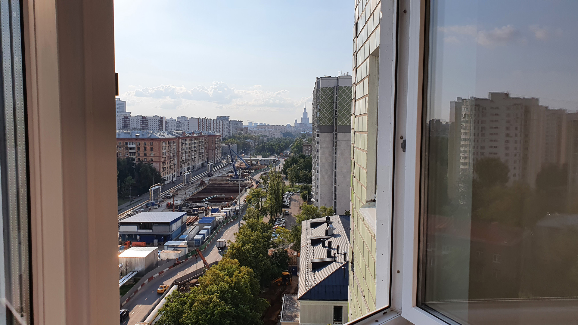 Из окон панорамный вид на МГУ им. Ломоносова и сквер на площадь у метро «Академическая» Калужско-Рижской линии и Троицкой линии метро.