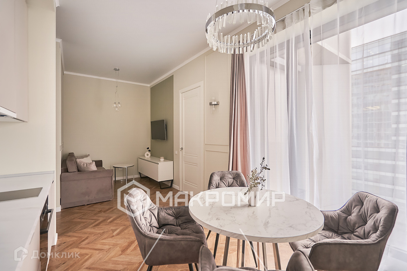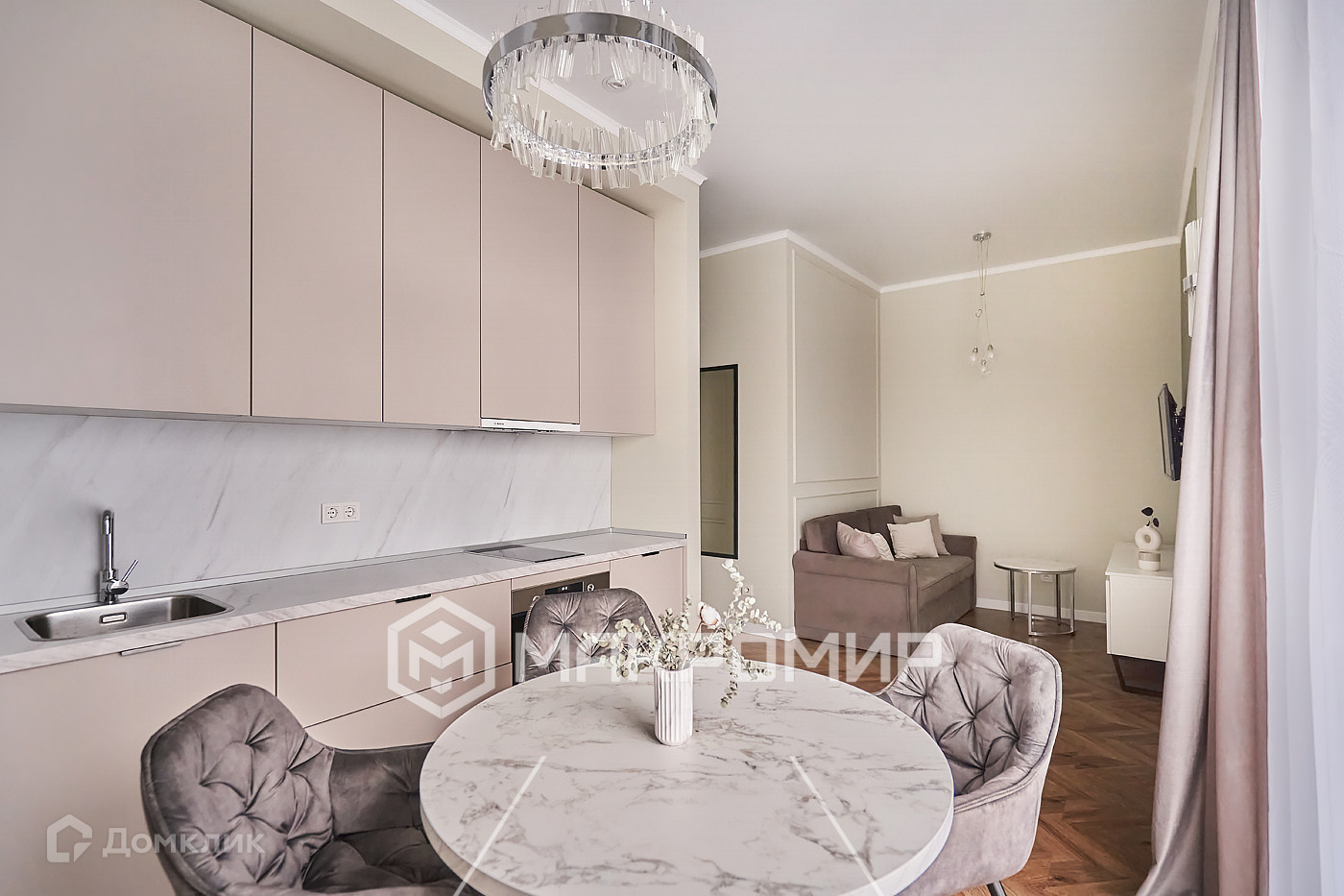 Планировка: кухня-гостиная + спальня. Гардеробная комната, санузел,прихожая, постирочная.