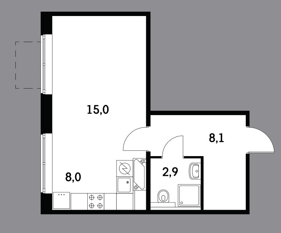 Площадь кухни 8 м2