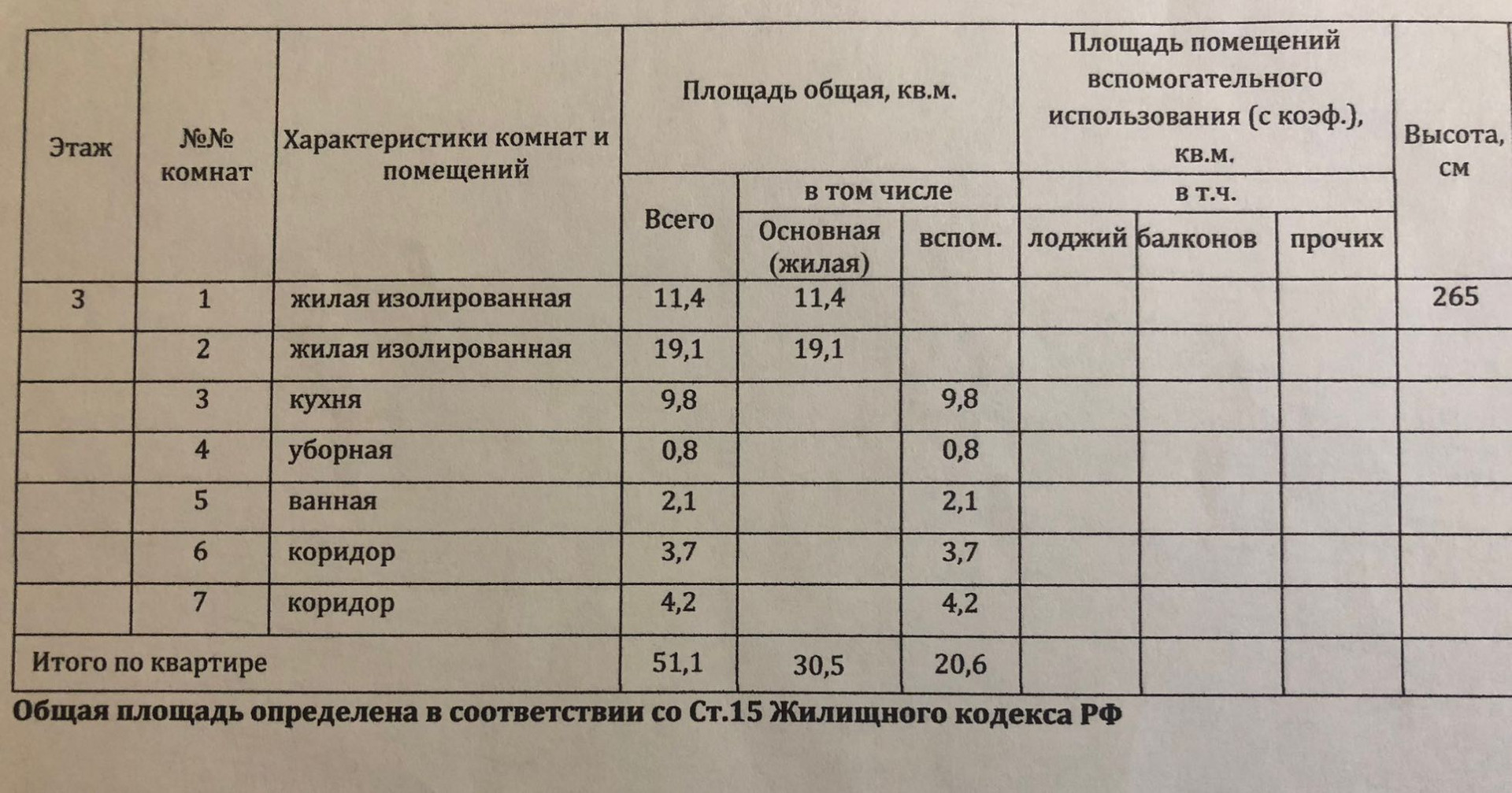 Общая площадь 51.1 м2