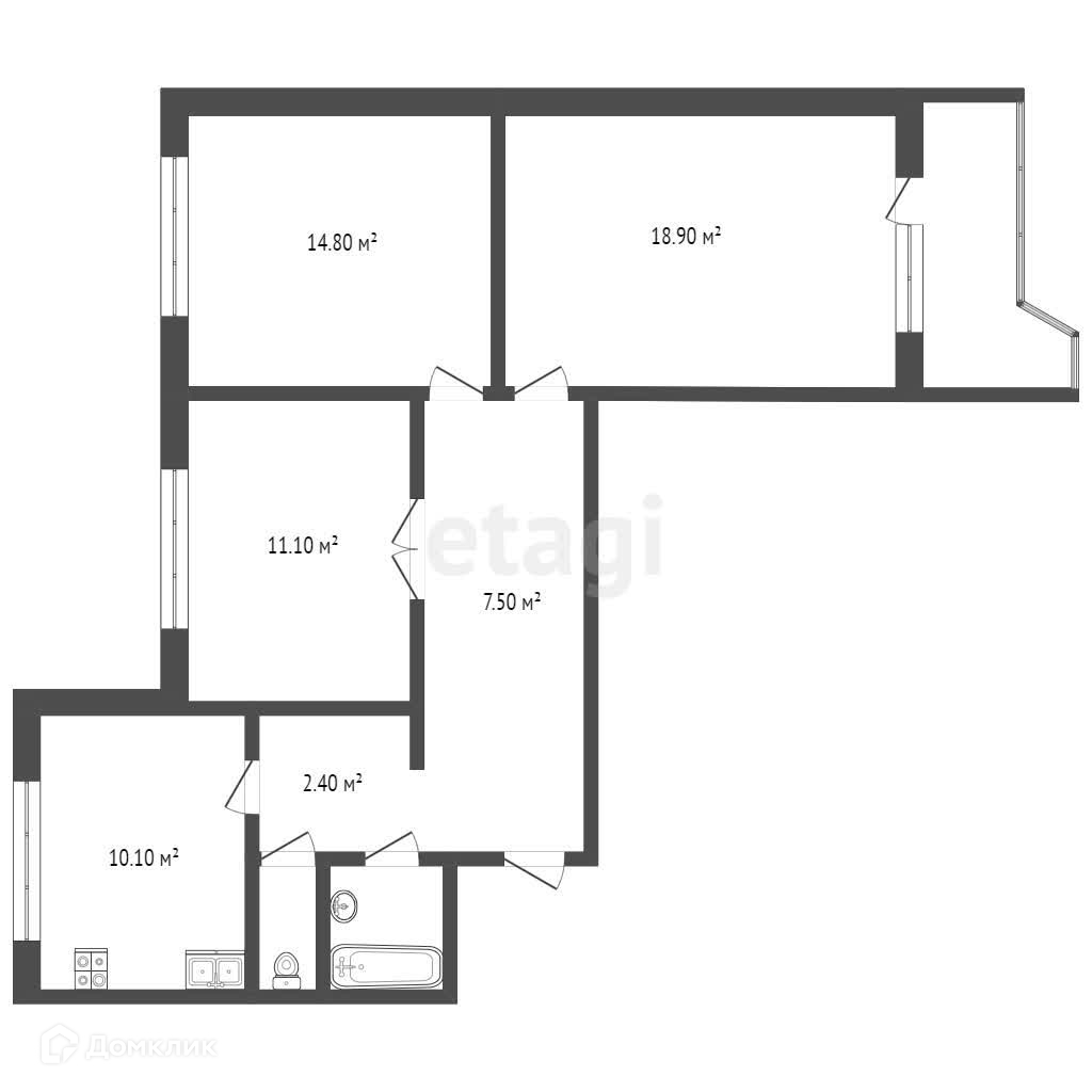 Общая площадь 72.6 м2