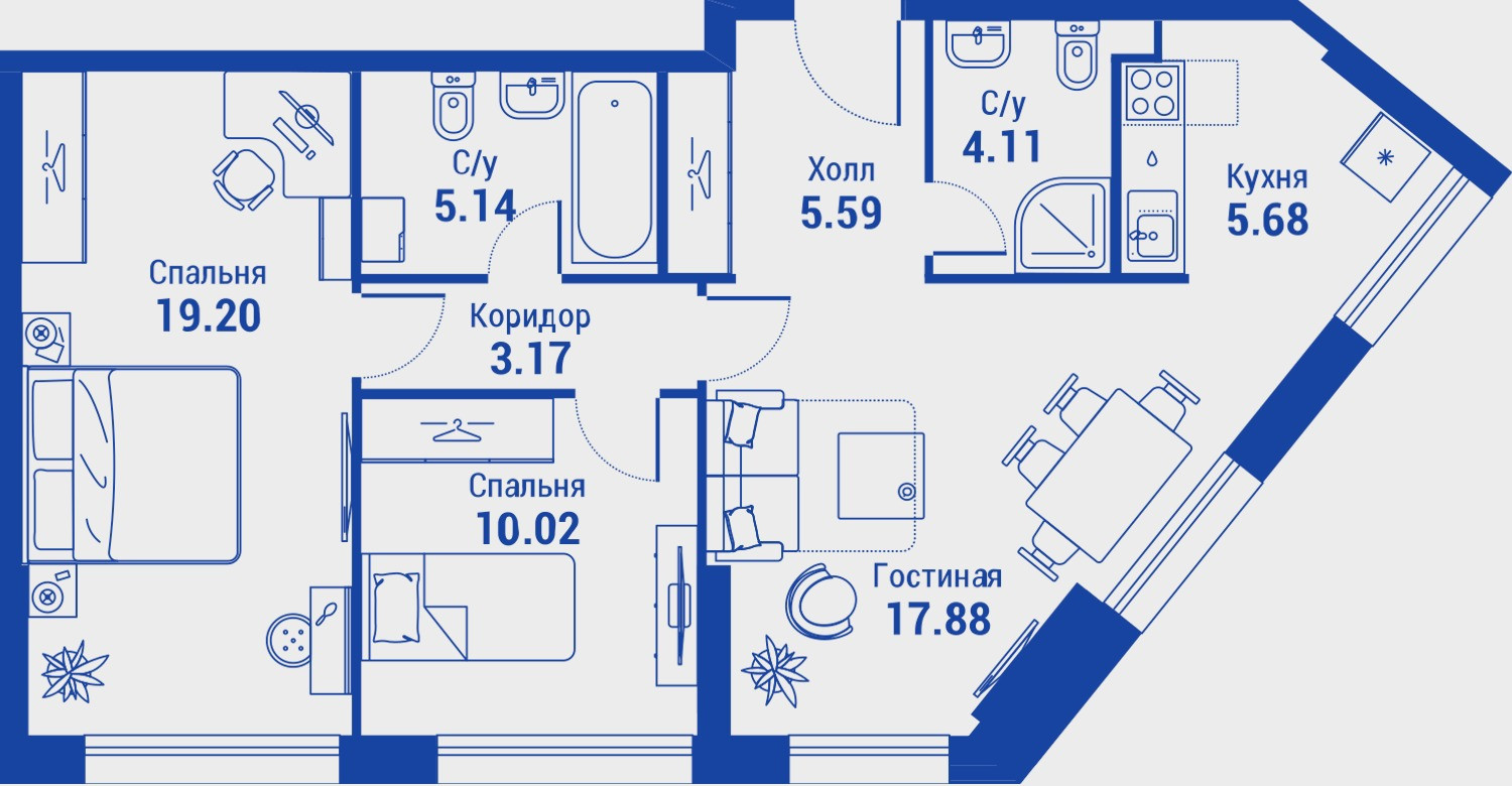 Гостиная– 18 м.