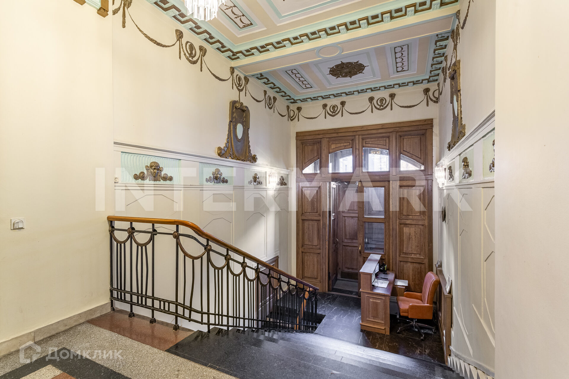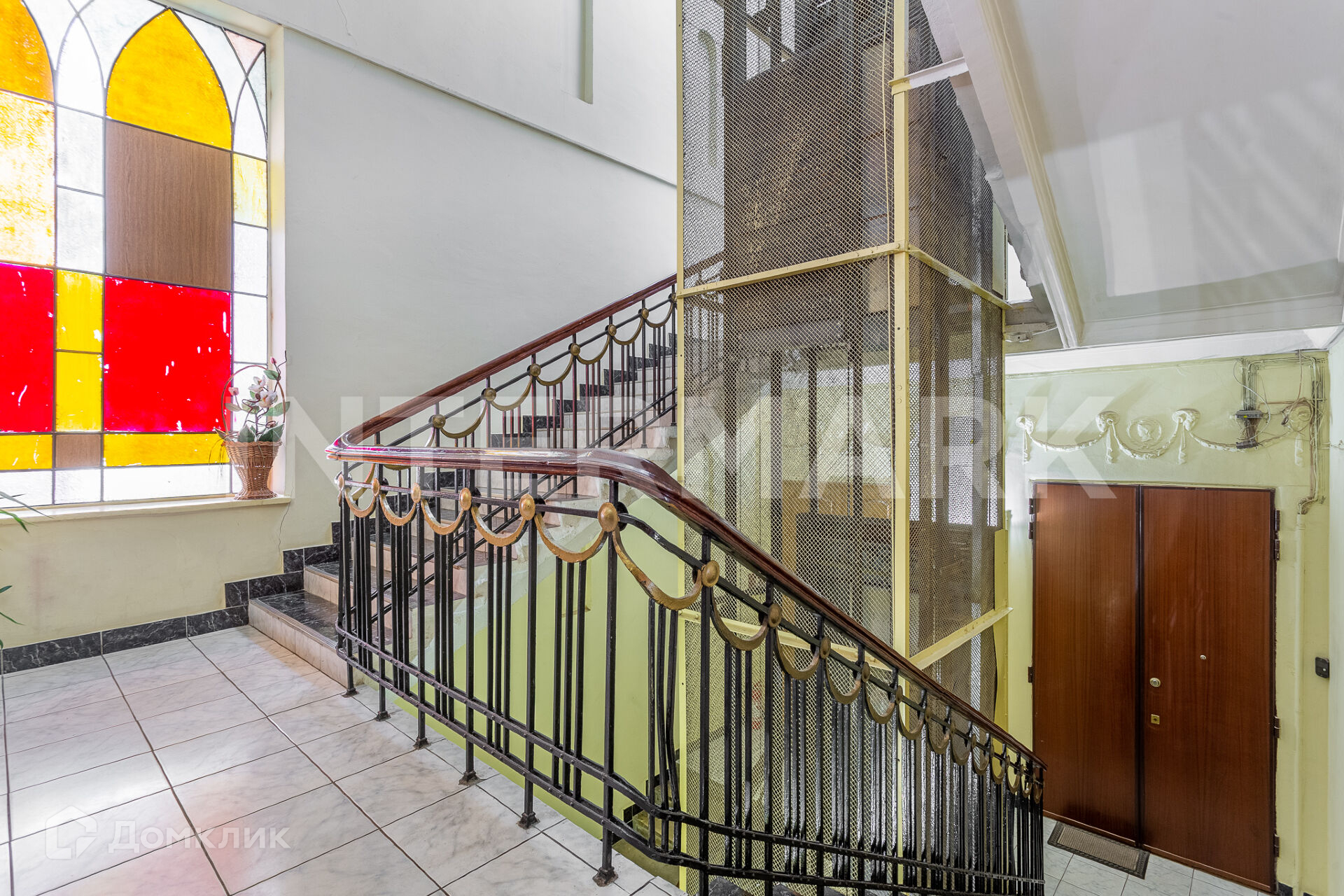 Просторный парадный подъезд, у входа квартиры сохранены витражи. Круглосуточный консьерж и видеонаблюдение по периметру дома. Парковка во дворе за шлагбаумом.