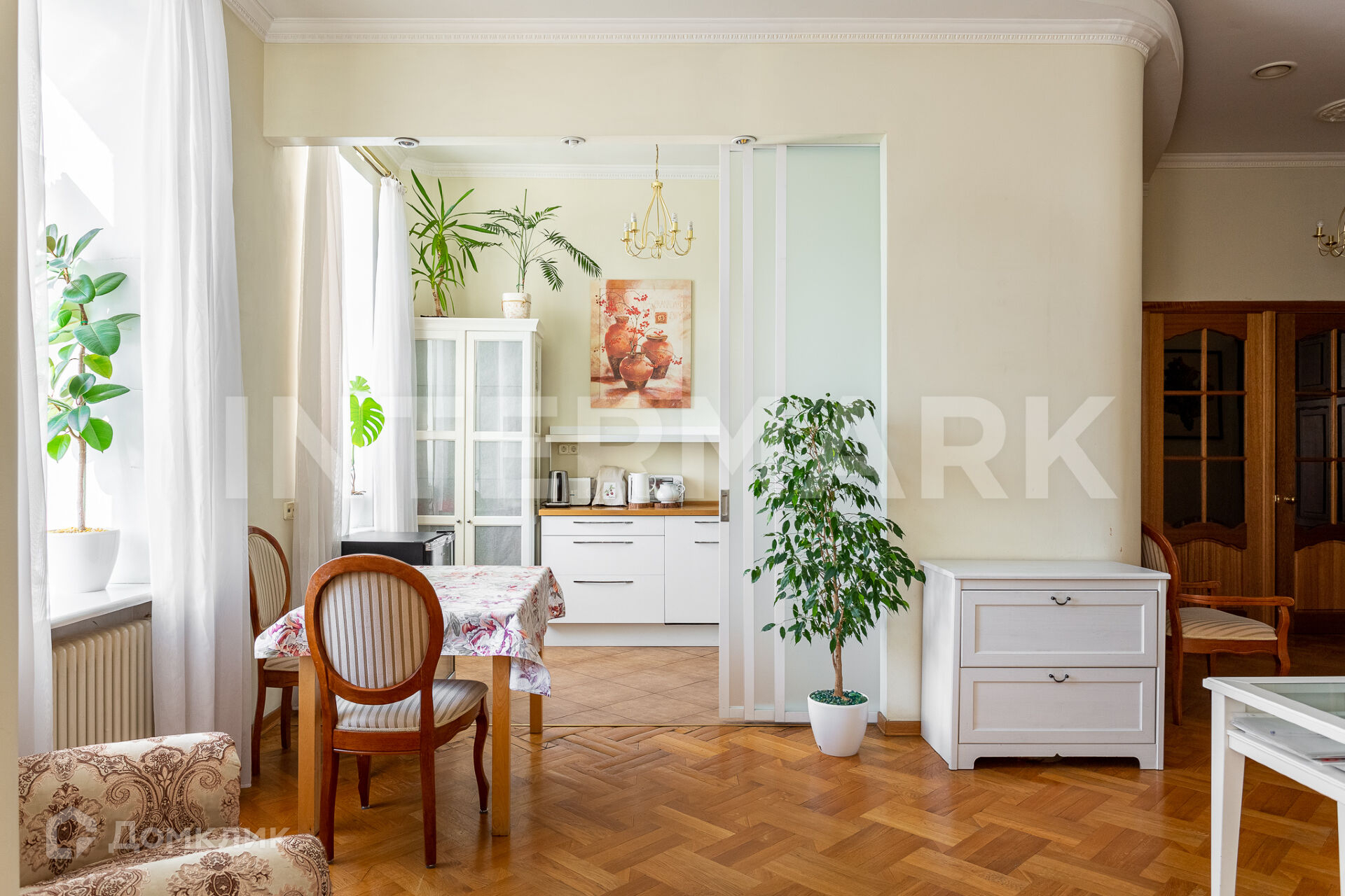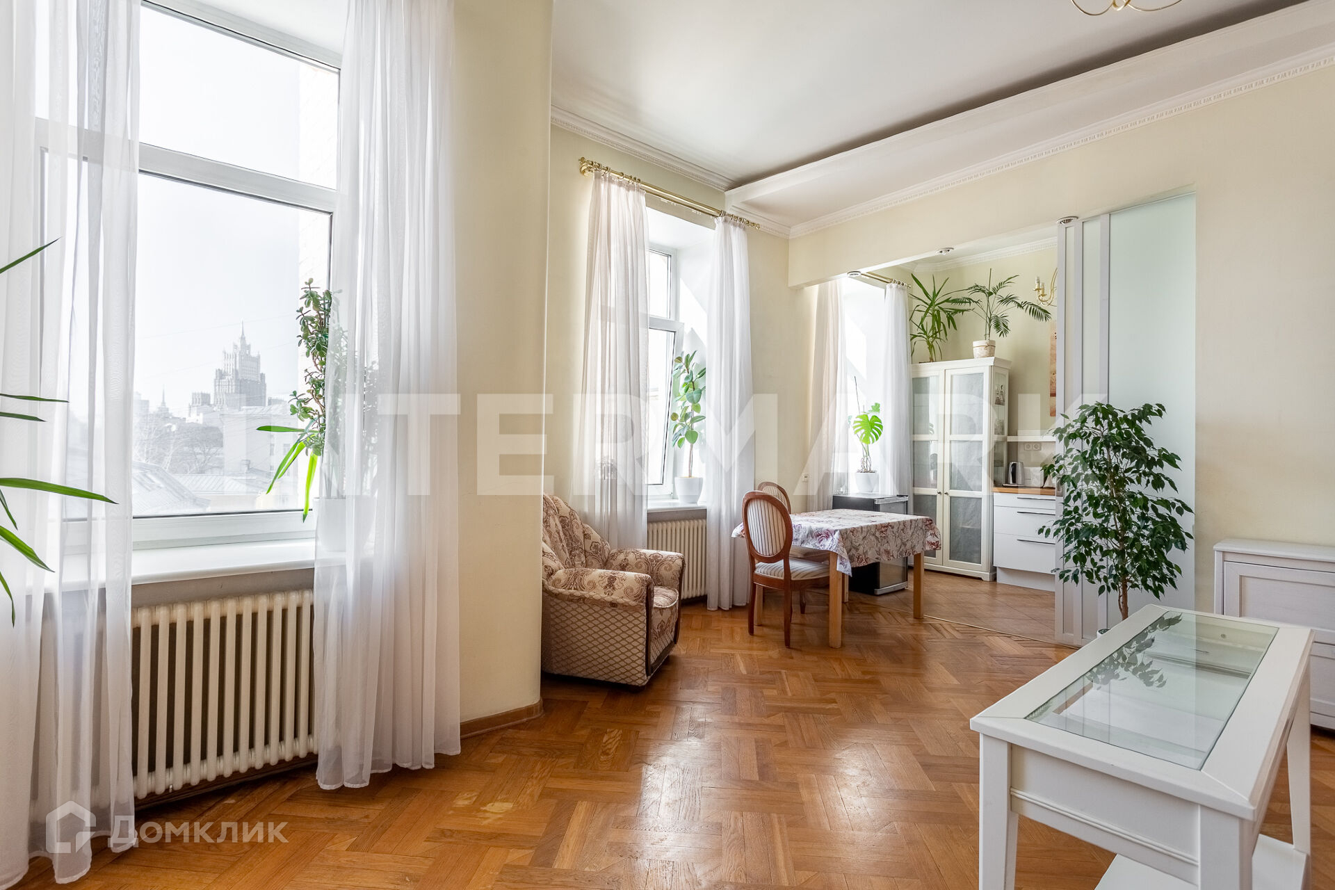 ID 64408. Великолепная 3-комнатная квартира с отличным видом на Москва-Сити и высотку МИД в районе Золотой мили в тихом переулке между Пречистенкой и Остоженкой.