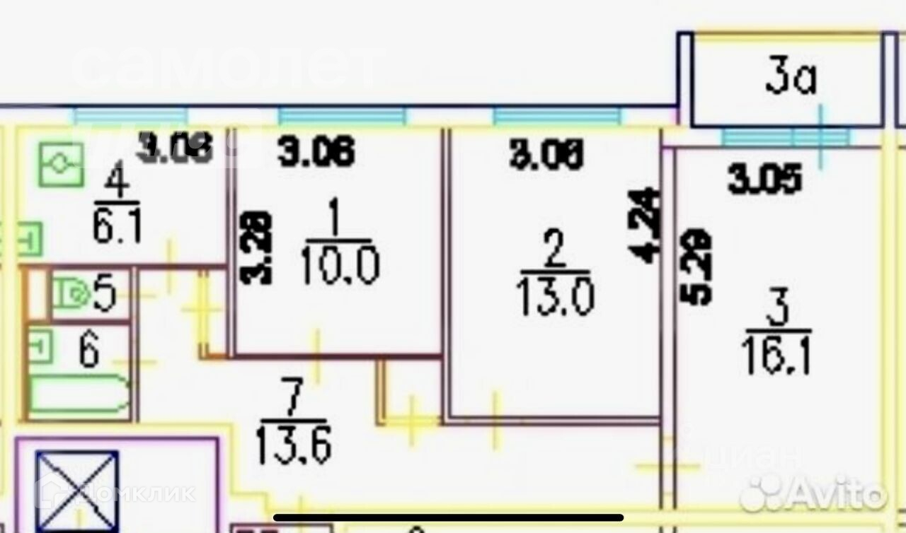 3-комнатная квартира, 61.6 м2, этаж 3 / 9, на продажу в Москве, улица Яблочкова, 35