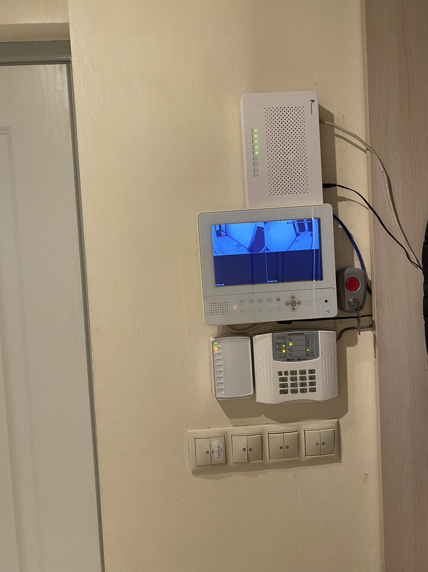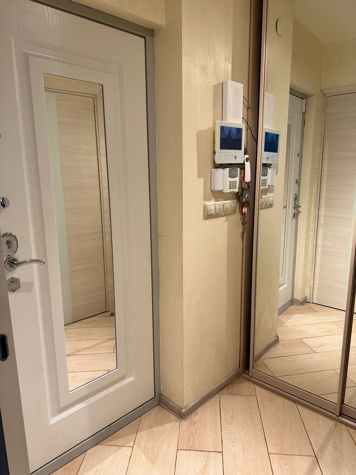 Для безопасности и лишнего света окна оборудованы рольставнями ( управление на пульте), в квартире установлено видеонаблюдение.