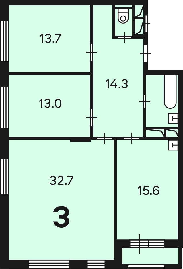 3-комнатная квартира, 95 м2, этаж 3 / 16, на продажу в Москве, улица Мельникова, 2