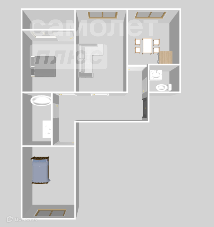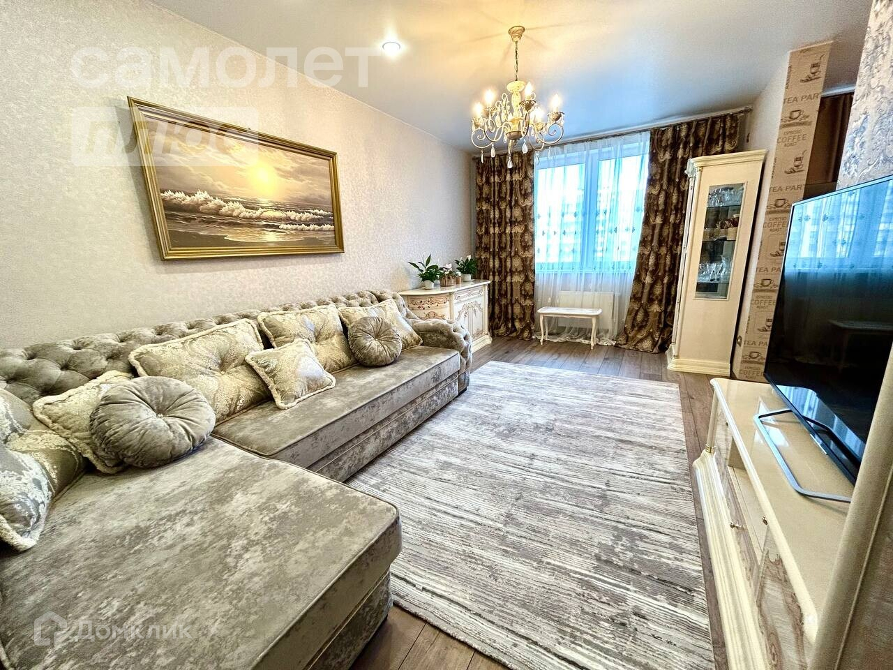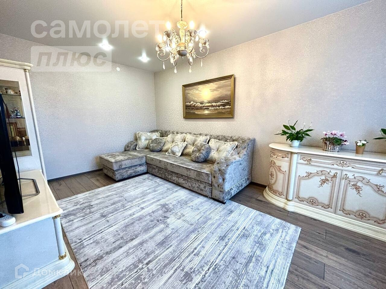 - Ламинат в комнатах и плитка в санузлах, натяжные потолки,