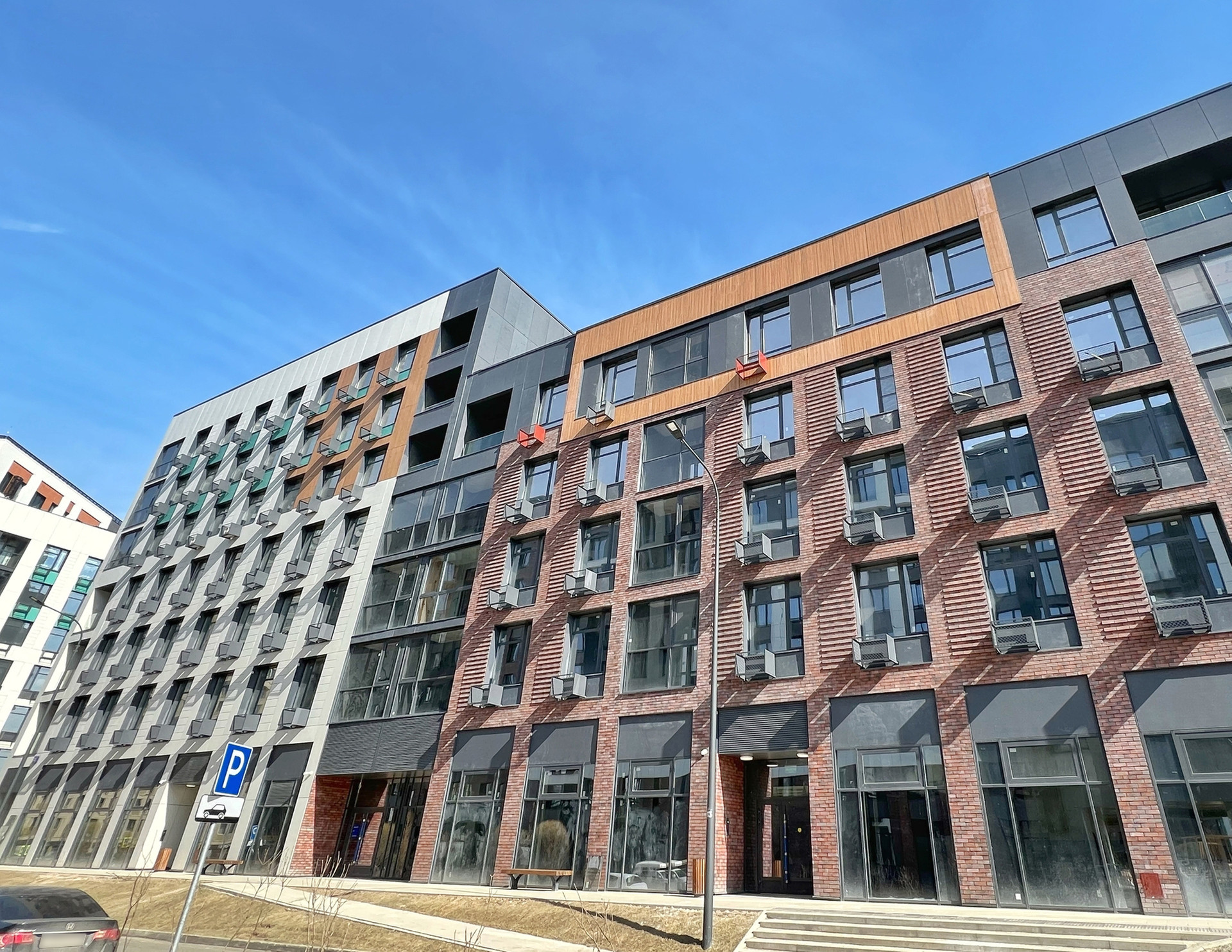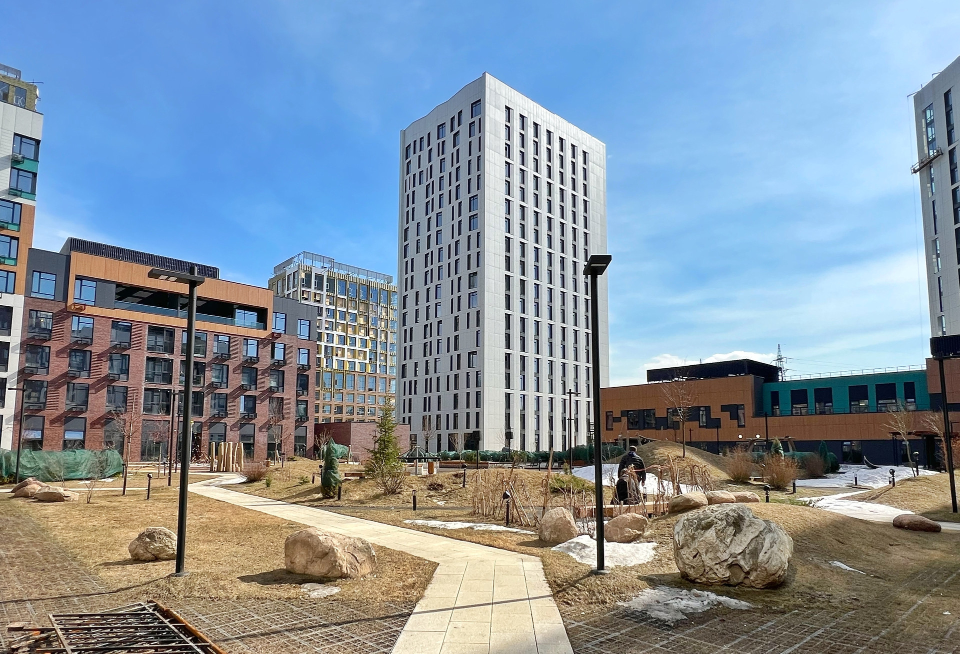 Шикарный внутренний двор с детскими и спортивными площадками, в 150 метрах от дома набережная Москвы-реки. В домах по соседству уже работают продуктовые магазины, кафе, пекарни.
