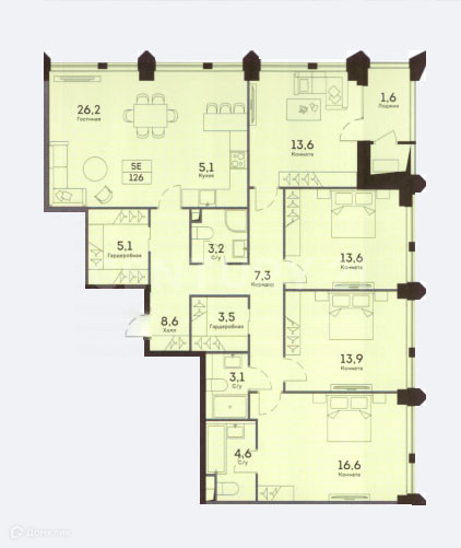 Общая площадь 126 м2