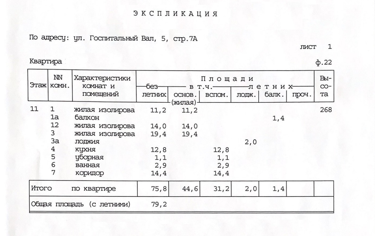 Общая площадь 75.8 м2