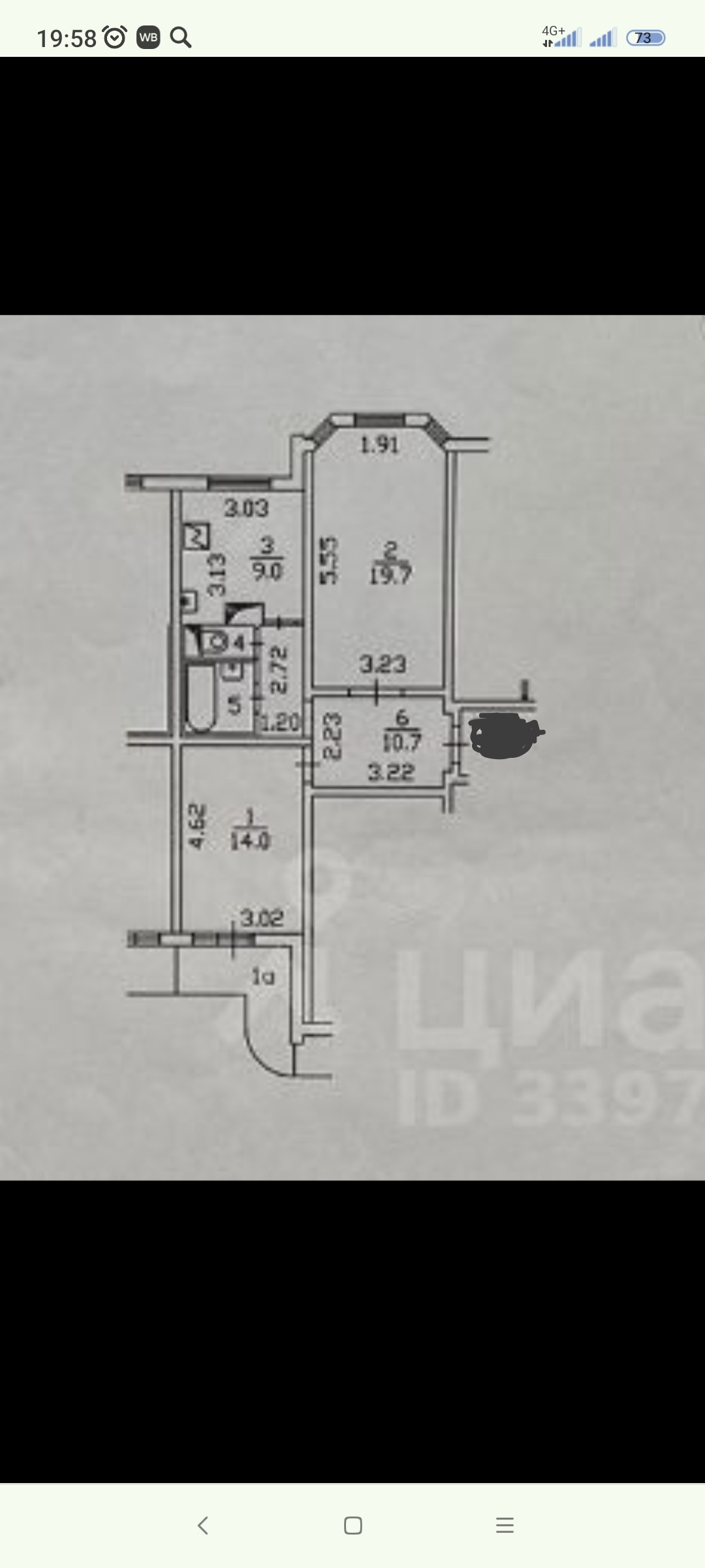 Жилая площадь 34.7 м2