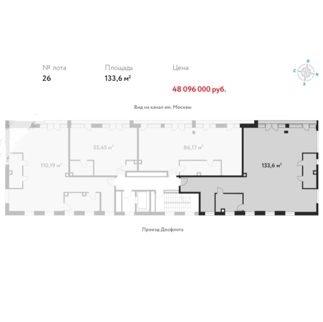 4-комнатная квартира, 133.6 м2, этаж 3 / 5, на продажу в Москве, проезд Досфлота, 12